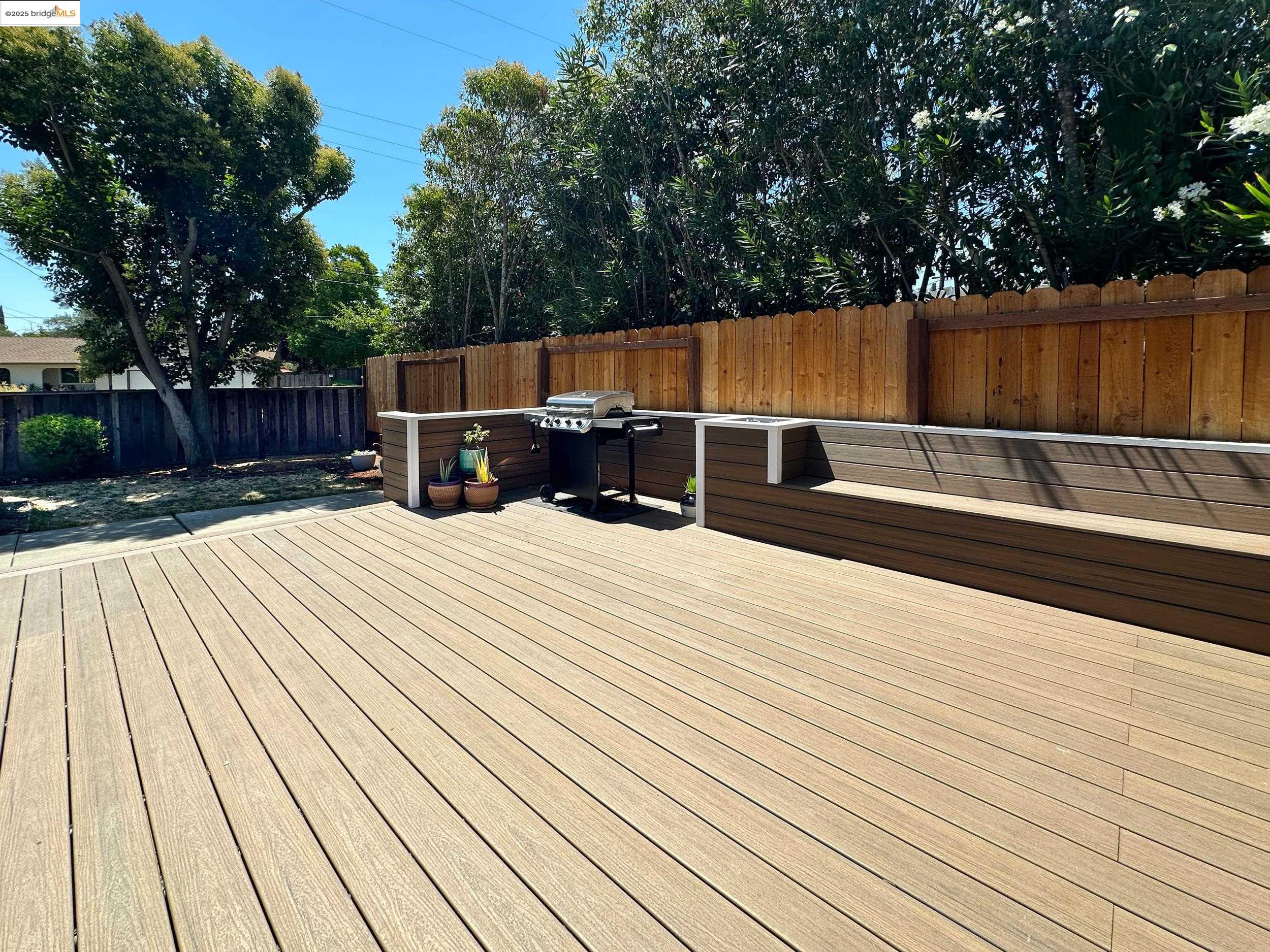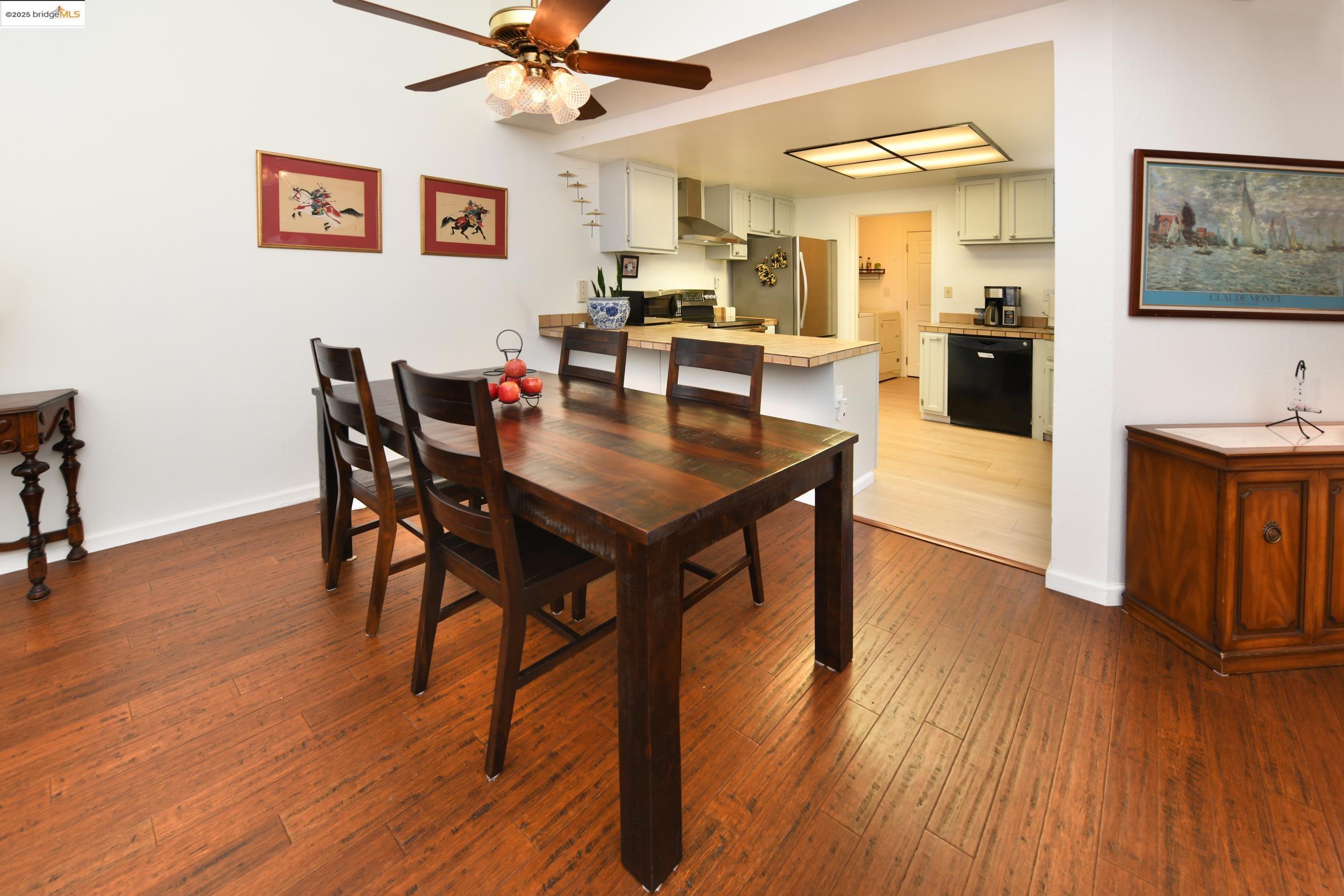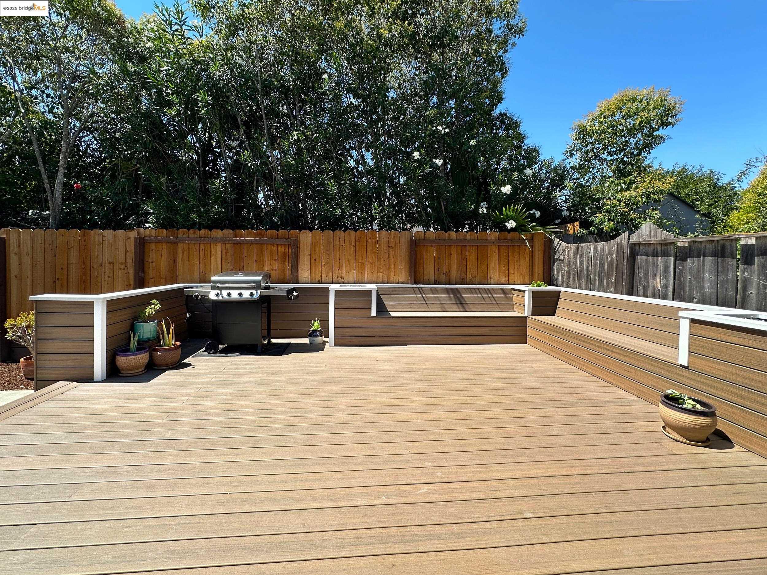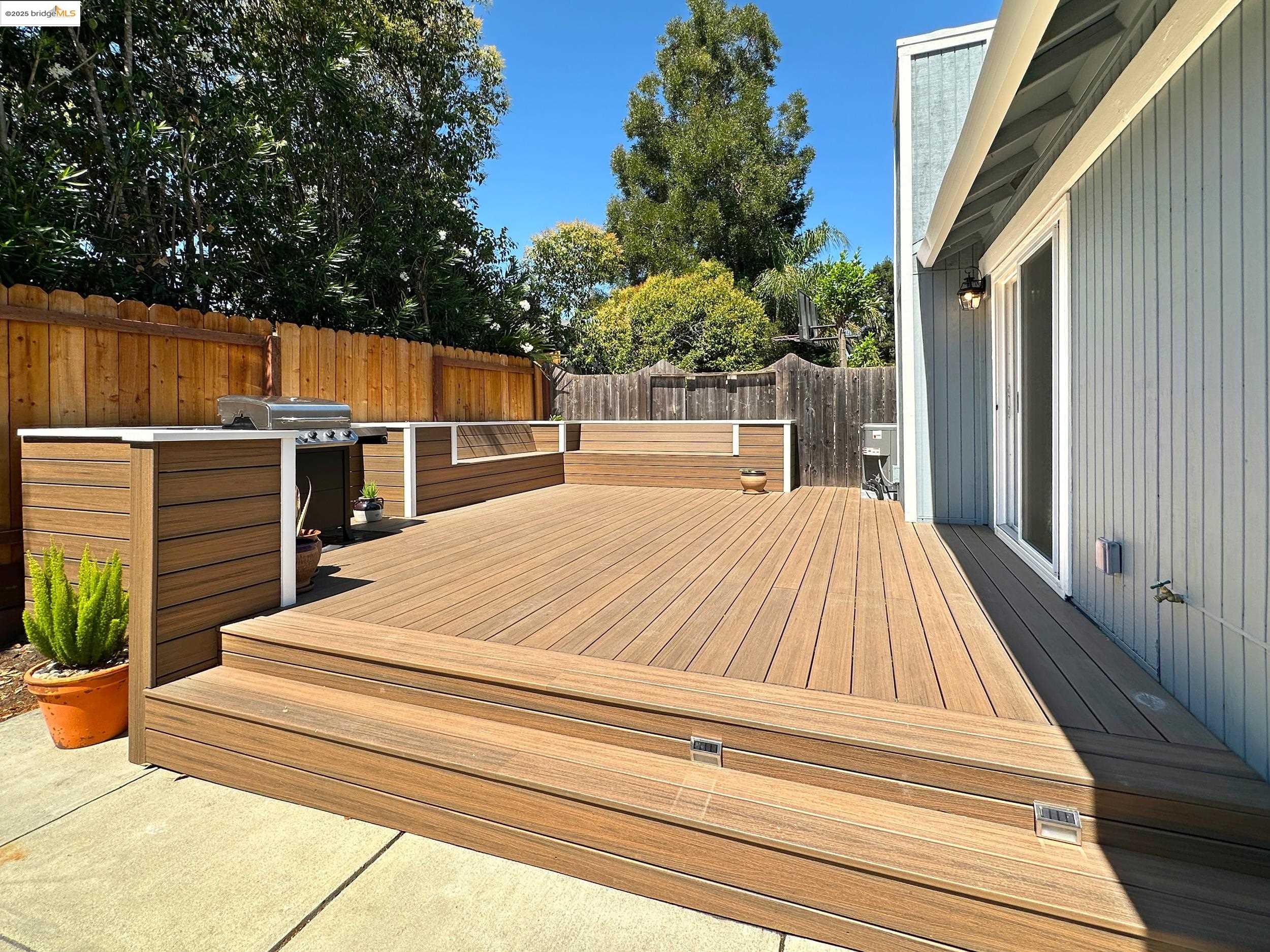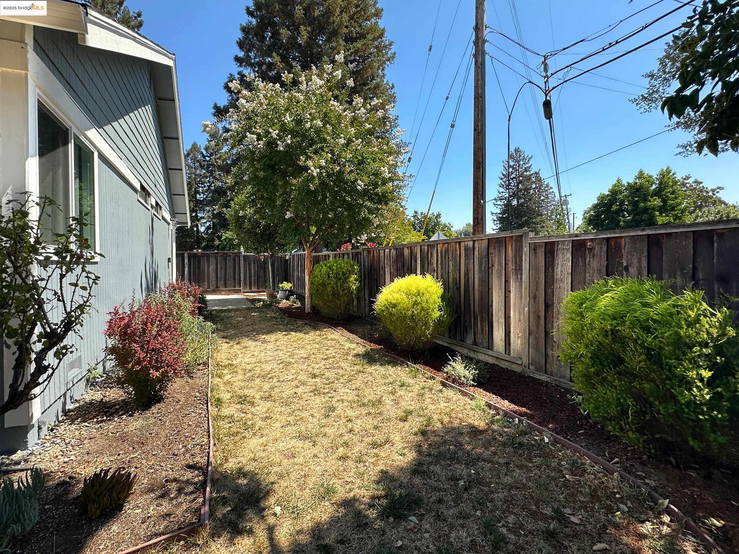 Charming end-unit in Donegal Place on the Pleasant Hill border! This single-story 2BD/2BA home (~1,285 sq ft) offers vaulted ceilings in the living room & primary suite, cozy fireplace, energy-efficient dual-pane windows/doors, and laminate flooring throughout. Kitchen features tiled counters, dual stainless sink, stainless steel fridge, dishwasher & electric oven/stove. Dining area with ceiling fan/light & built-in bookshelves. Primary bath boasts dual sink vanity & step-in shower. Includes laundry room with washer/dryer and 2-car garage with interior access. One of the largest lots in complex with deck for entertaining and garden/play area. Close to shopping, transit, and the charm of Martinez & Pleasant Hill.