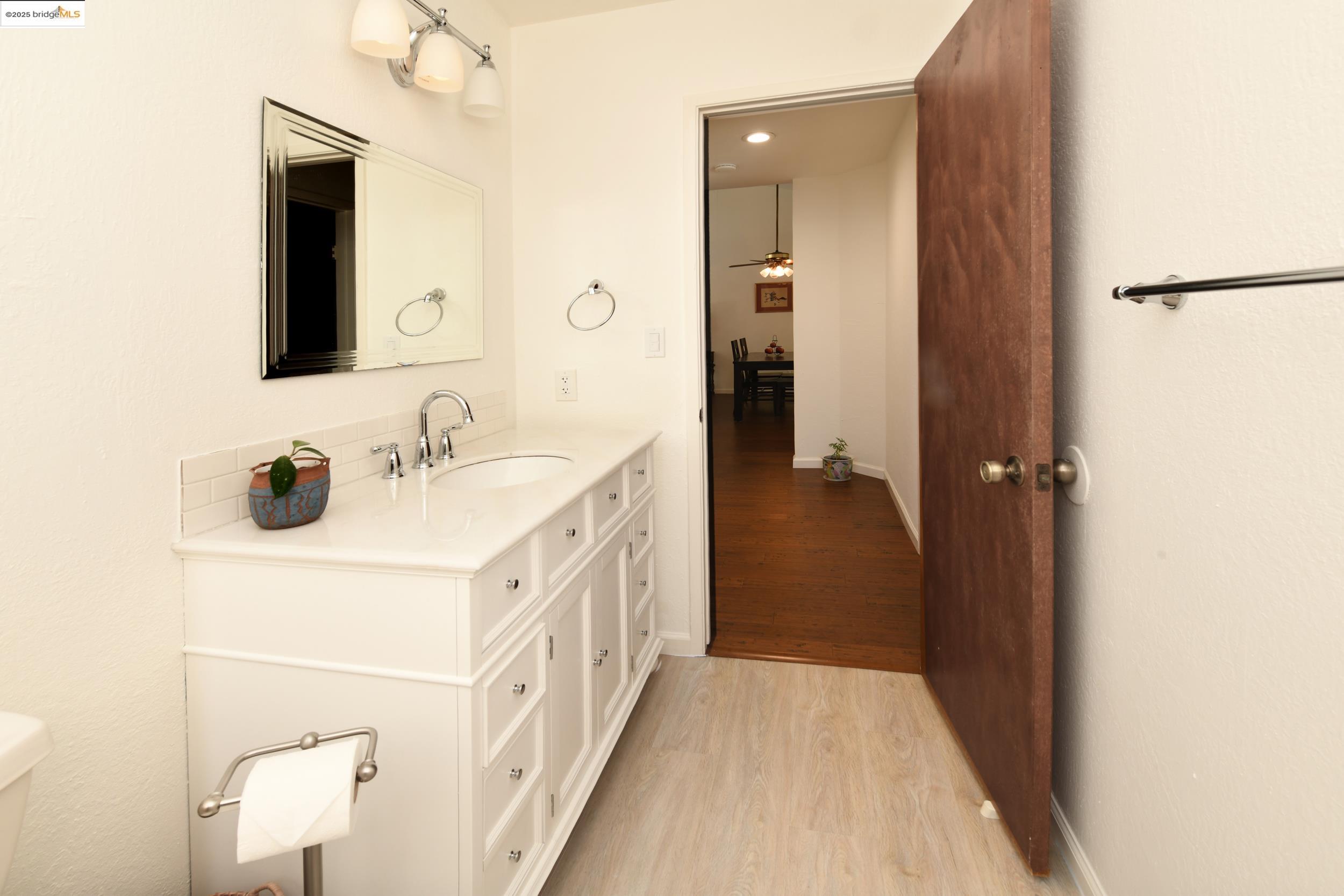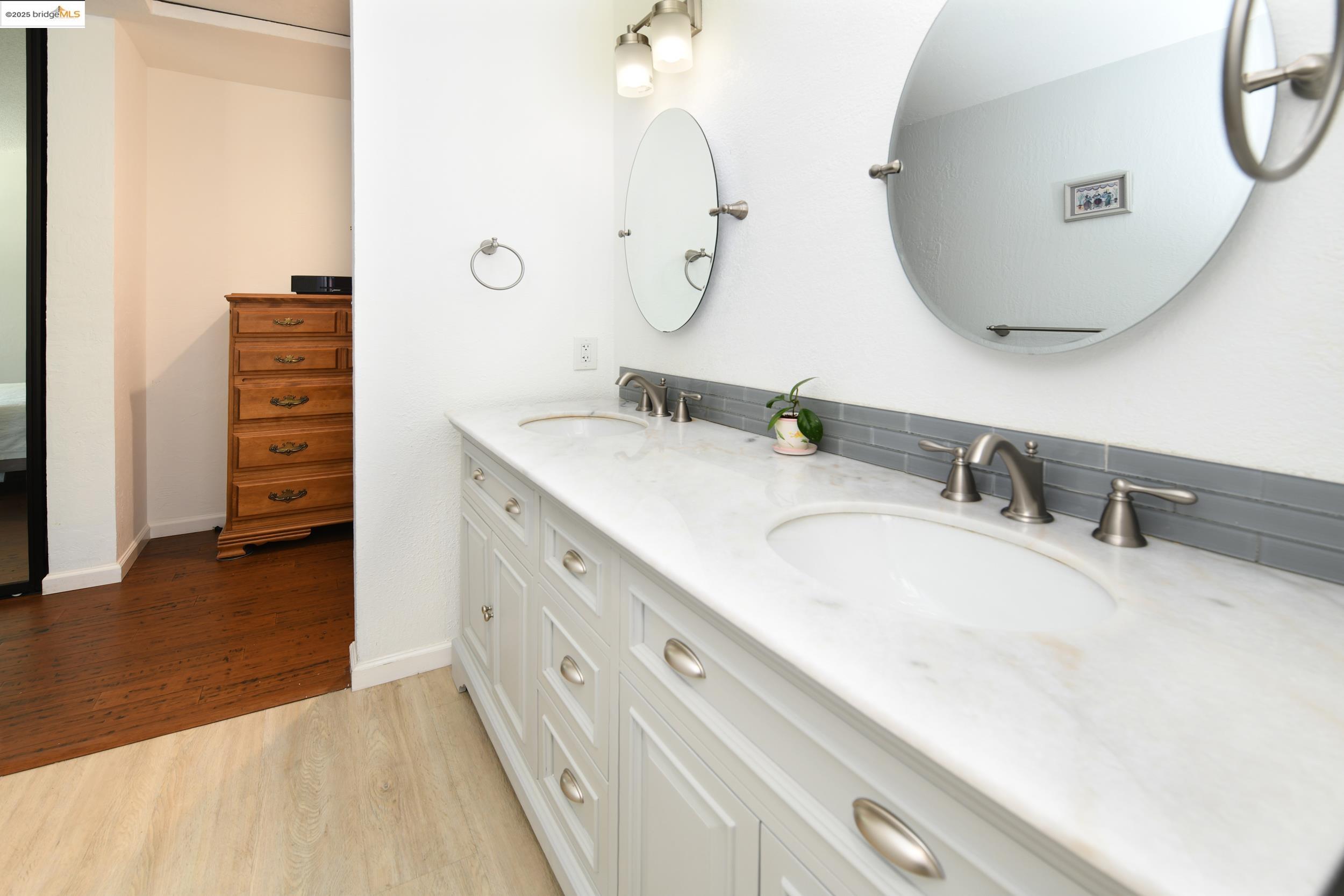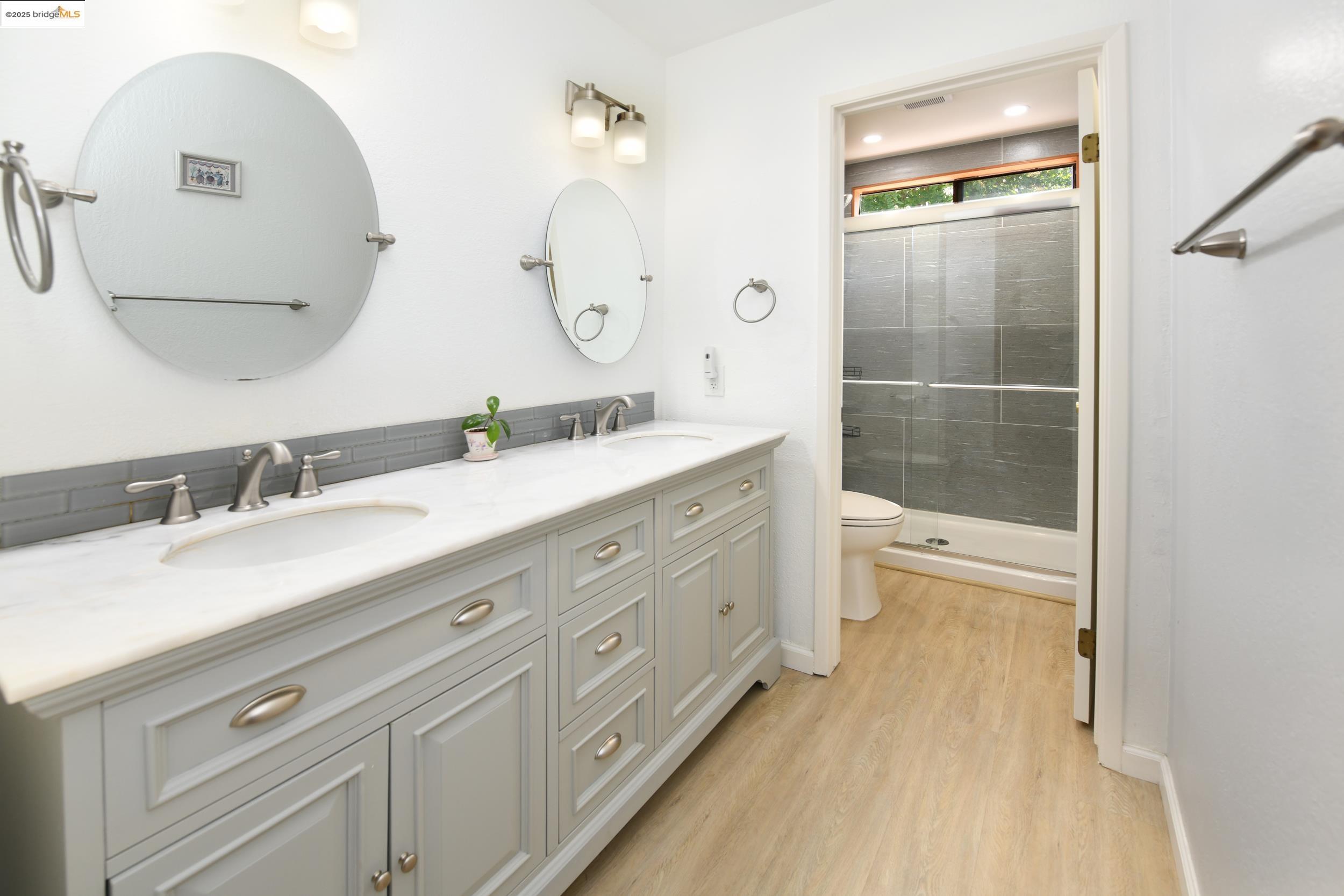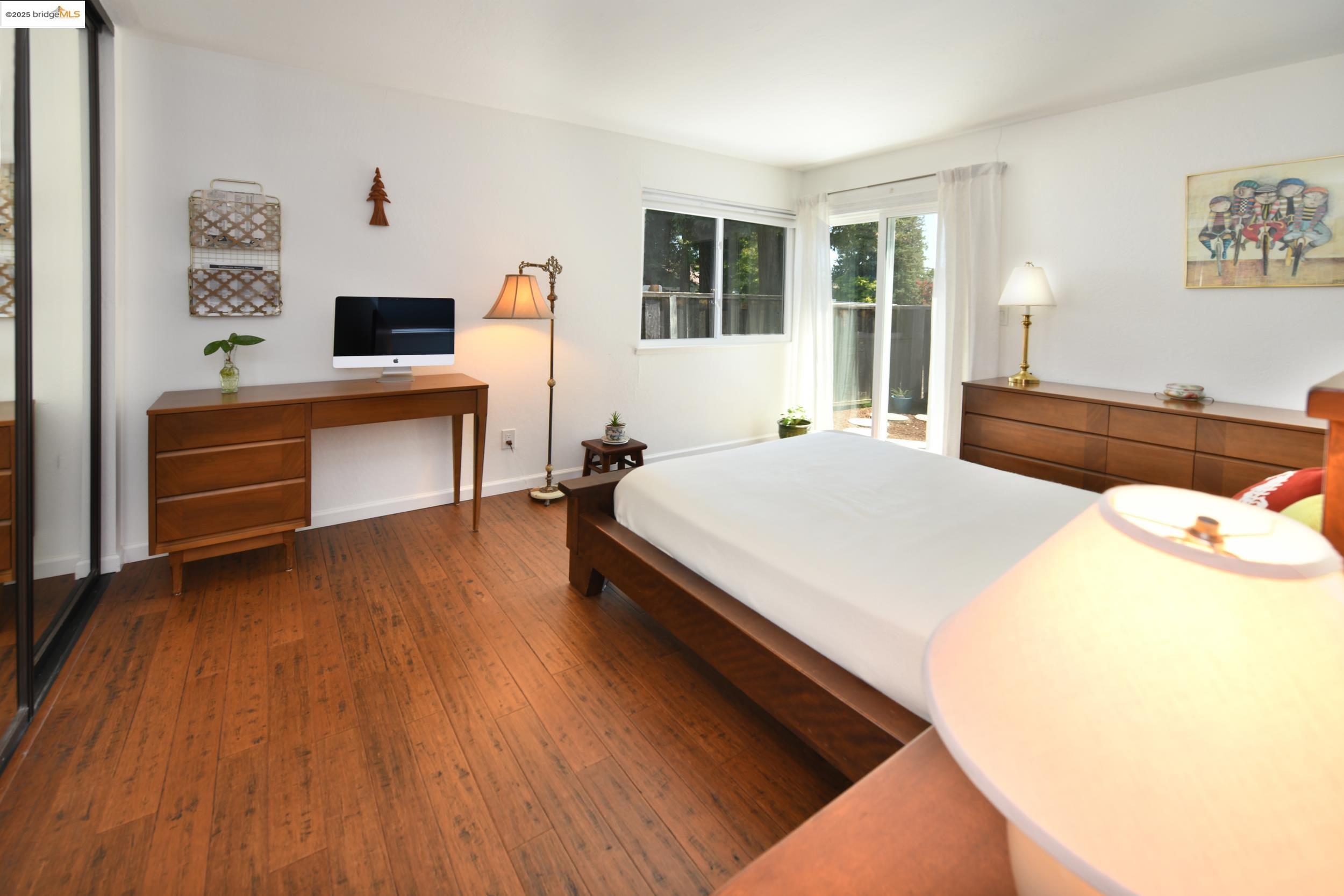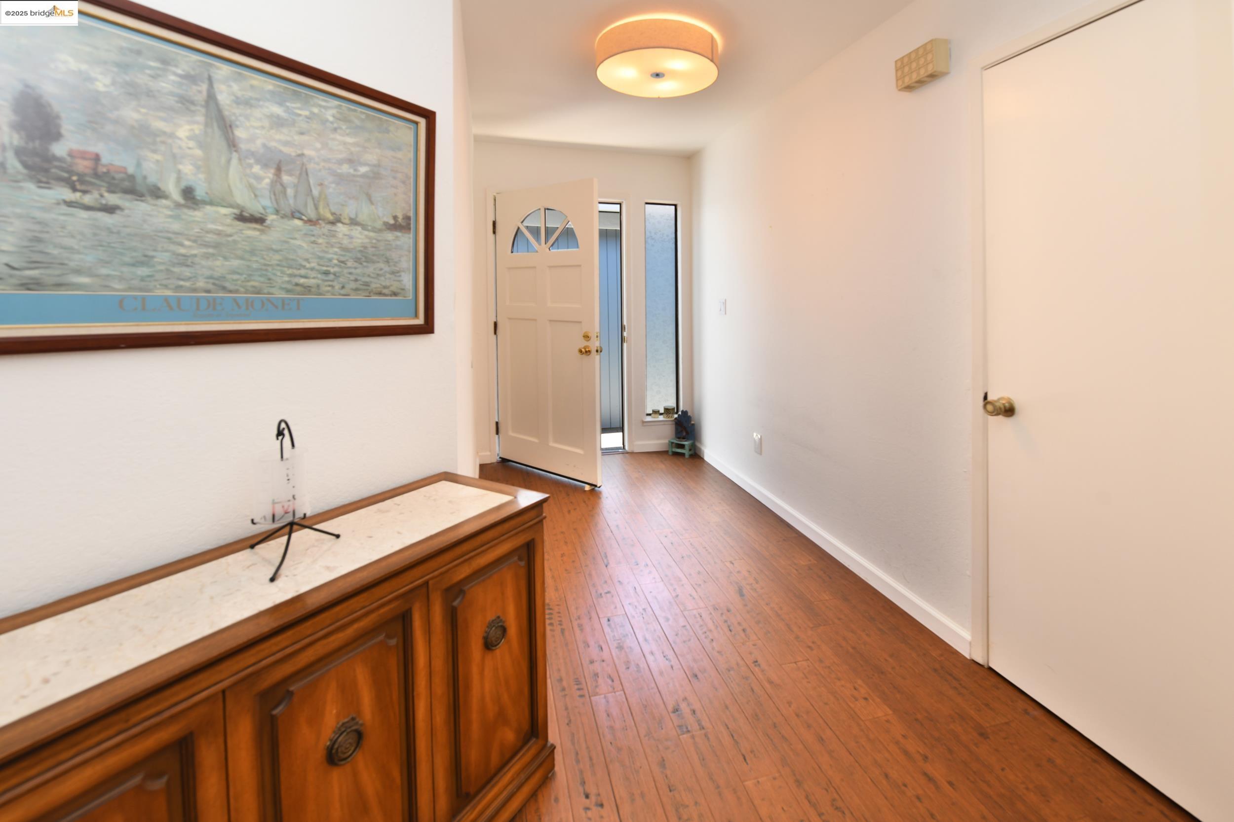 Charming end-unit in Donegal Place on the Pleasant Hill border! This single-story 2BD/2BA home (~1,285 sq ft) offers vaulted ceilings in the living room & primary suite, cozy fireplace, energy-efficient dual-pane windows/doors, and laminate flooring throughout. Kitchen features tiled counters, dual stainless sink, stainless steel fridge, dishwasher & electric oven/stove. Dining area with ceiling fan/light & built-in bookshelves. Primary bath boasts dual sink vanity & step-in shower. Includes laundry room with washer/dryer and 2-car garage with interior access. One of the largest lots in complex with deck for entertaining and garden/play area. Close to shopping, transit, and the charm of Martinez & Pleasant Hill.