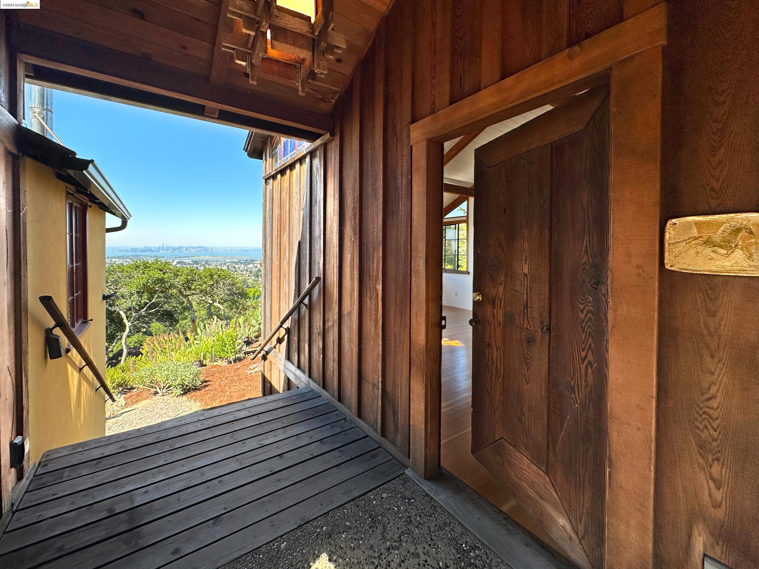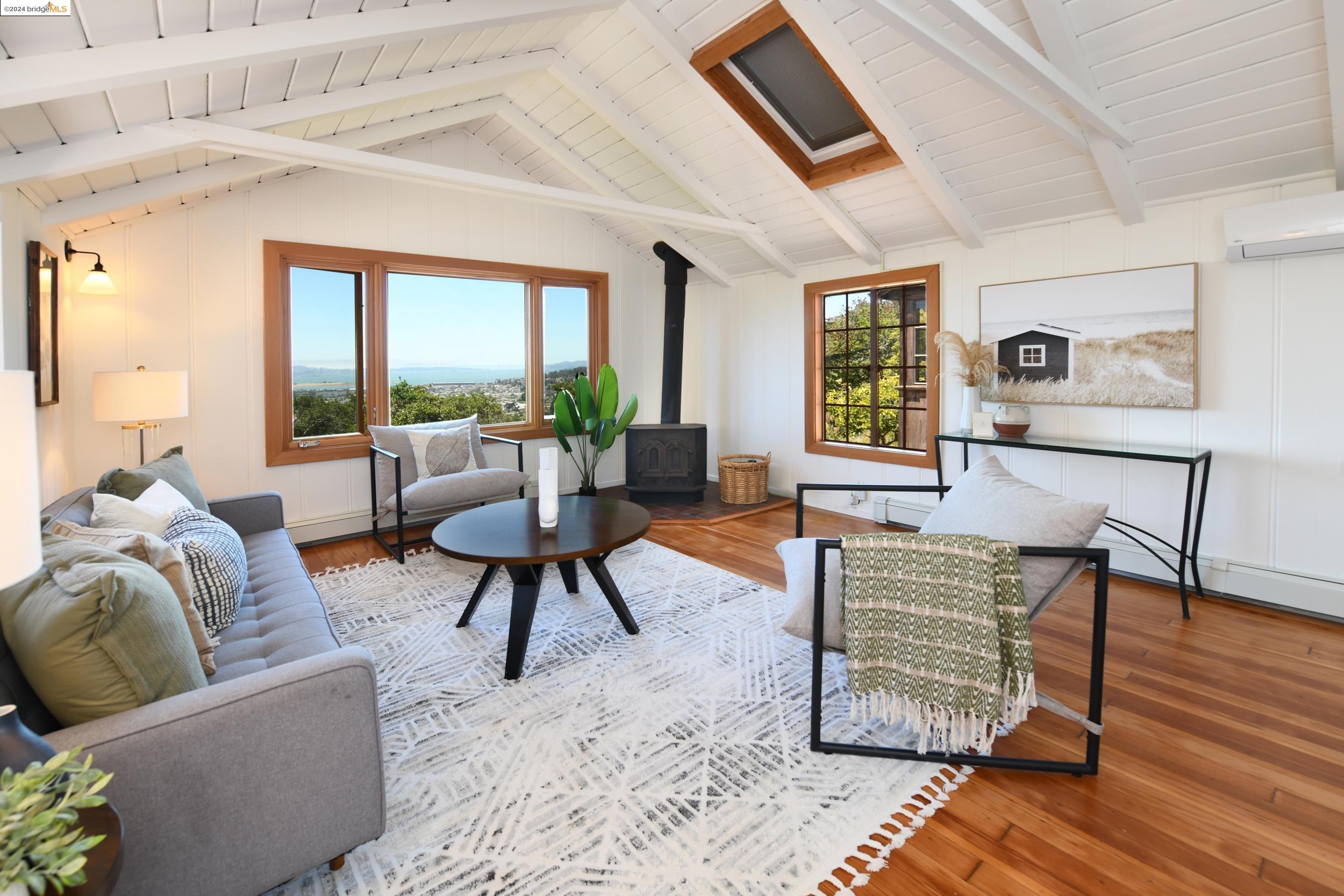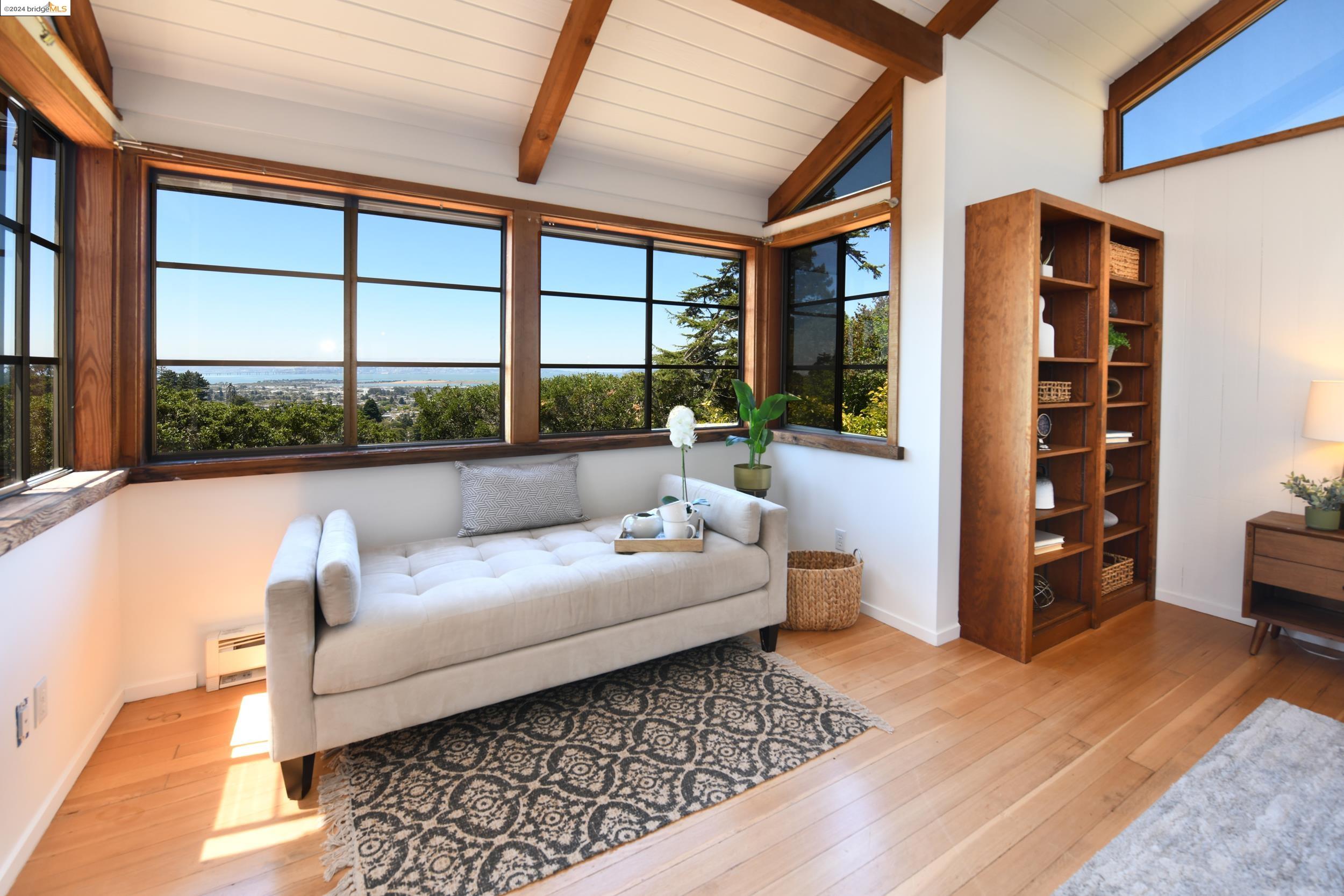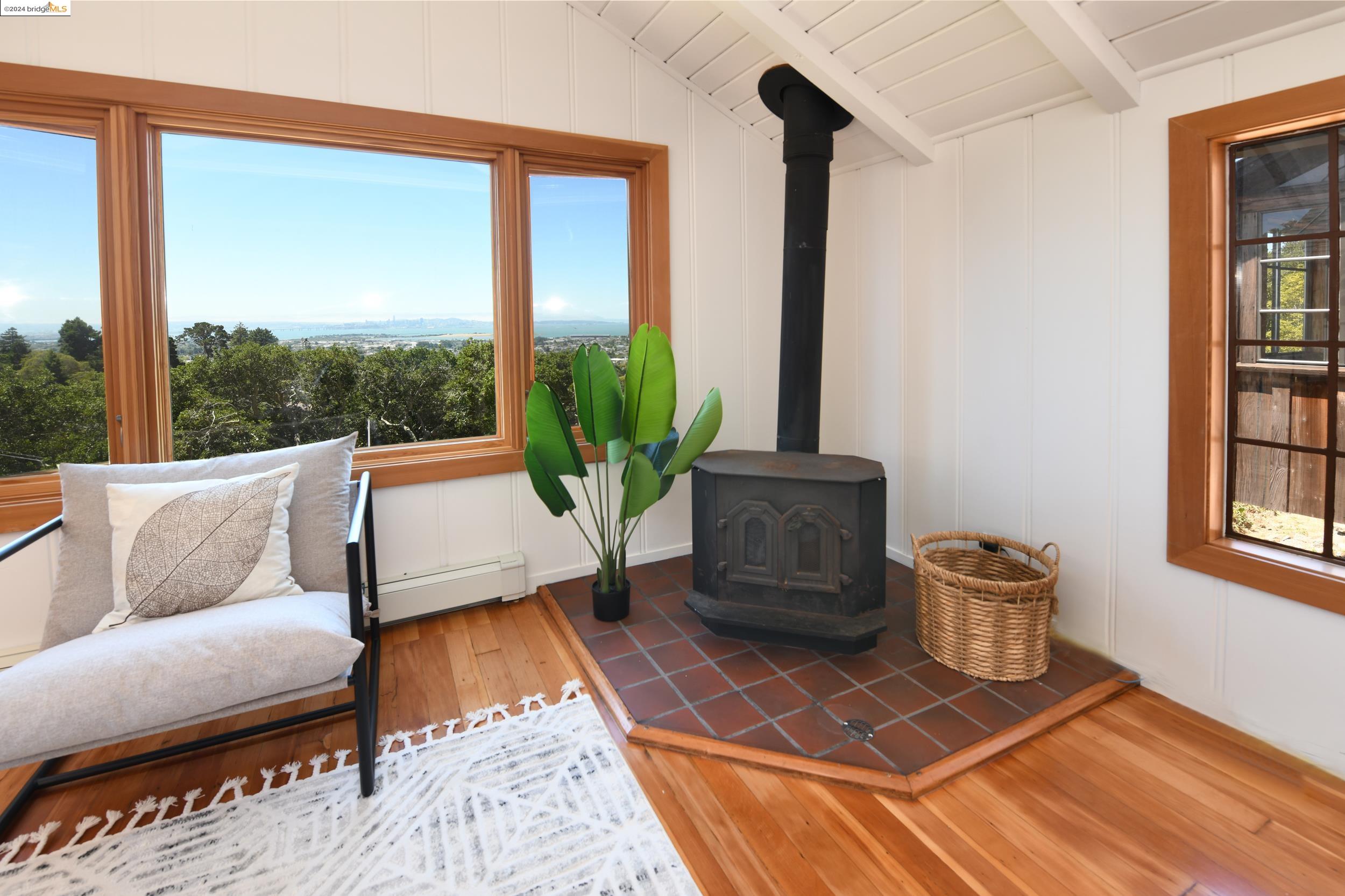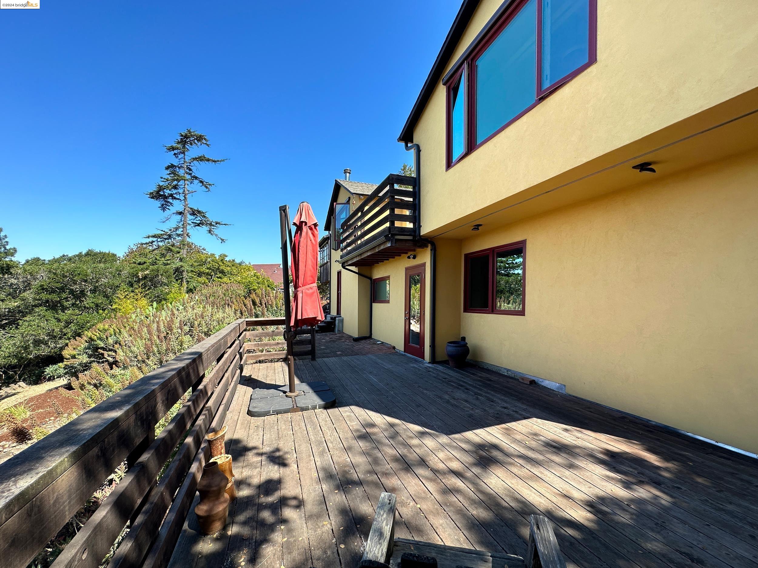 A beautifully unique and inspiring retreat built in 1924 and modernized in 2019. Nestled on over a quarter-acre, private hillside in central Kensington, this 3-bedroom, 3.5-bathroom single-family residence offers 1,875 square feet of bright and airy living space, set on an expansive 11,410 square foot lot. The property boasts a fruitful orchard with persimmons, lemons, and apple trees, a serene oak forest, a tranquil bamboo grove, and ample sunlight and space for flourishing vegetable gardens. This home, perfect for those seeking tranquility, combines eclectic architecture and farmhouse styles with modern updates. The exterior showcases board and batten-weathered redwood, while the interior exudes warmth with a white-weathered finish and stained glass accents. This two-story abode is a sanctuary of light, lush surroundings, and stunning cityscapes. Every detail has been thoughtfully enhanced since 2019, with over $400,000 in updates including Nest smart control, a central alarm system, new exterior walls and insulation, ACME solar-powered retractable awnings, along with mini-split heat and AC units. Additional updates include newly replaced foundations, seismic retrofitting, new skylights, upgraded electrical and plumbing systems, as well as Marvin Signature windows.