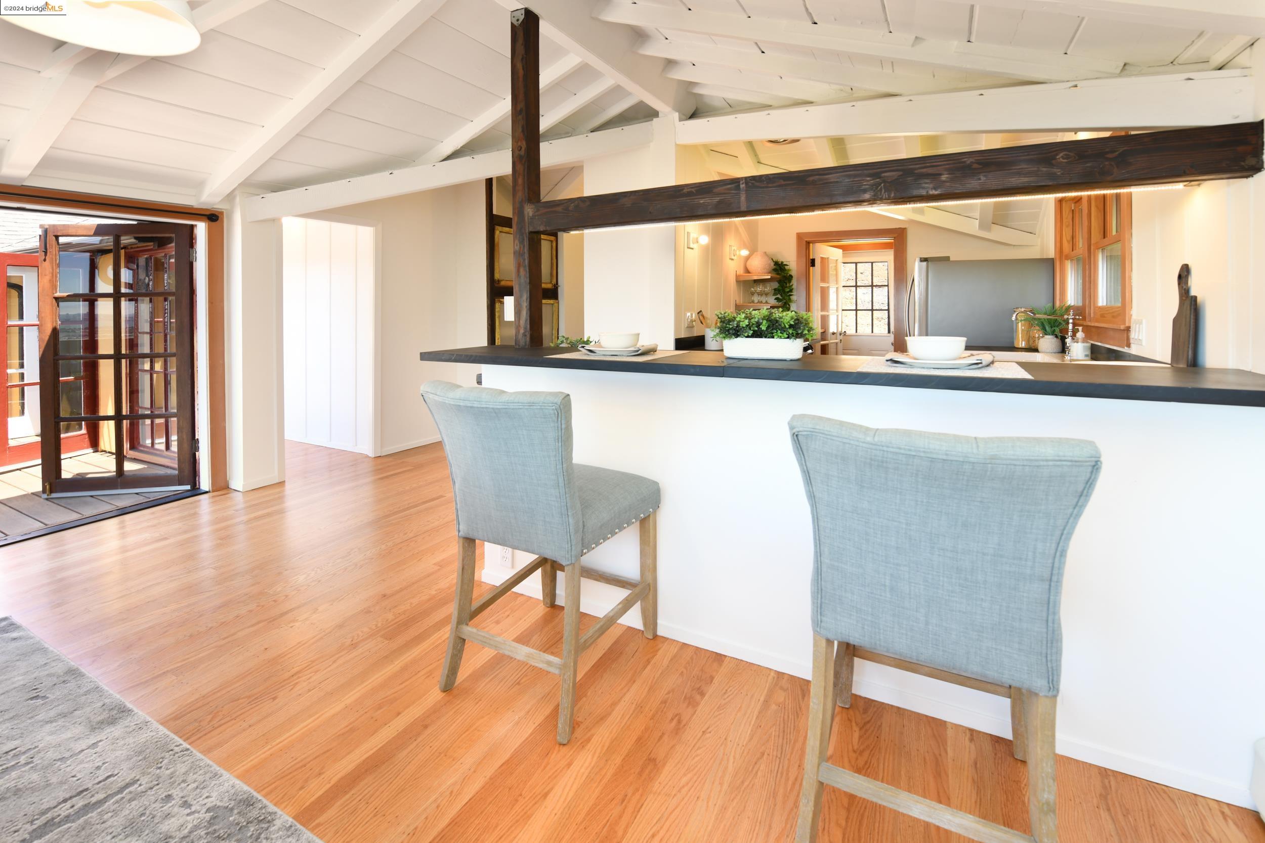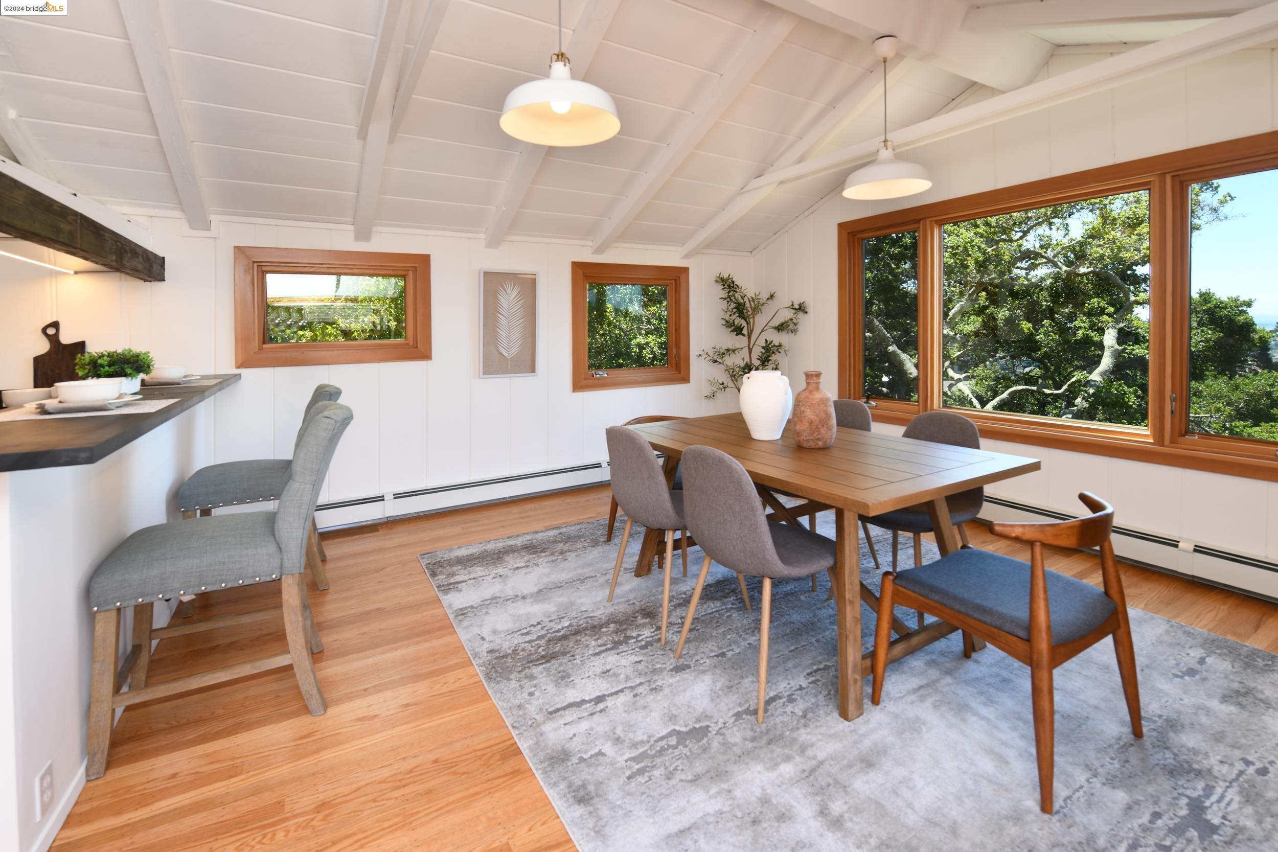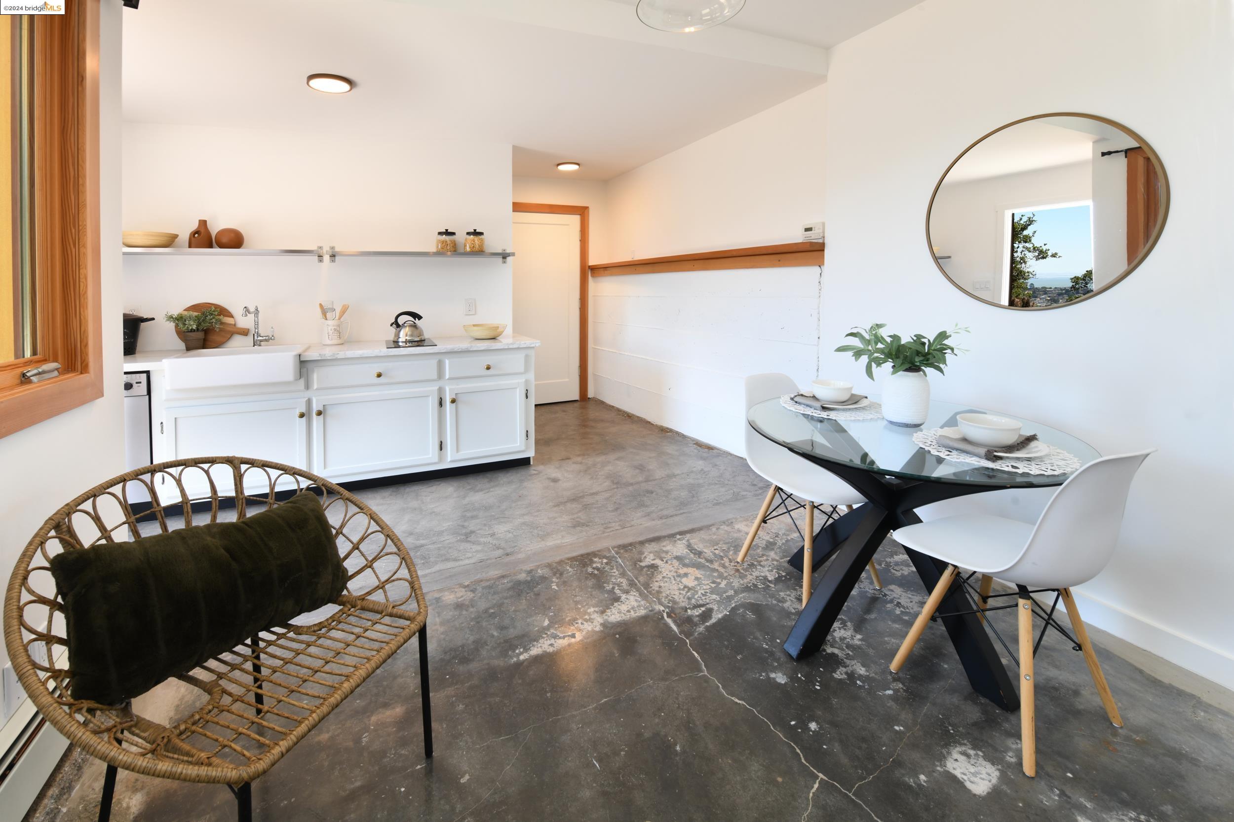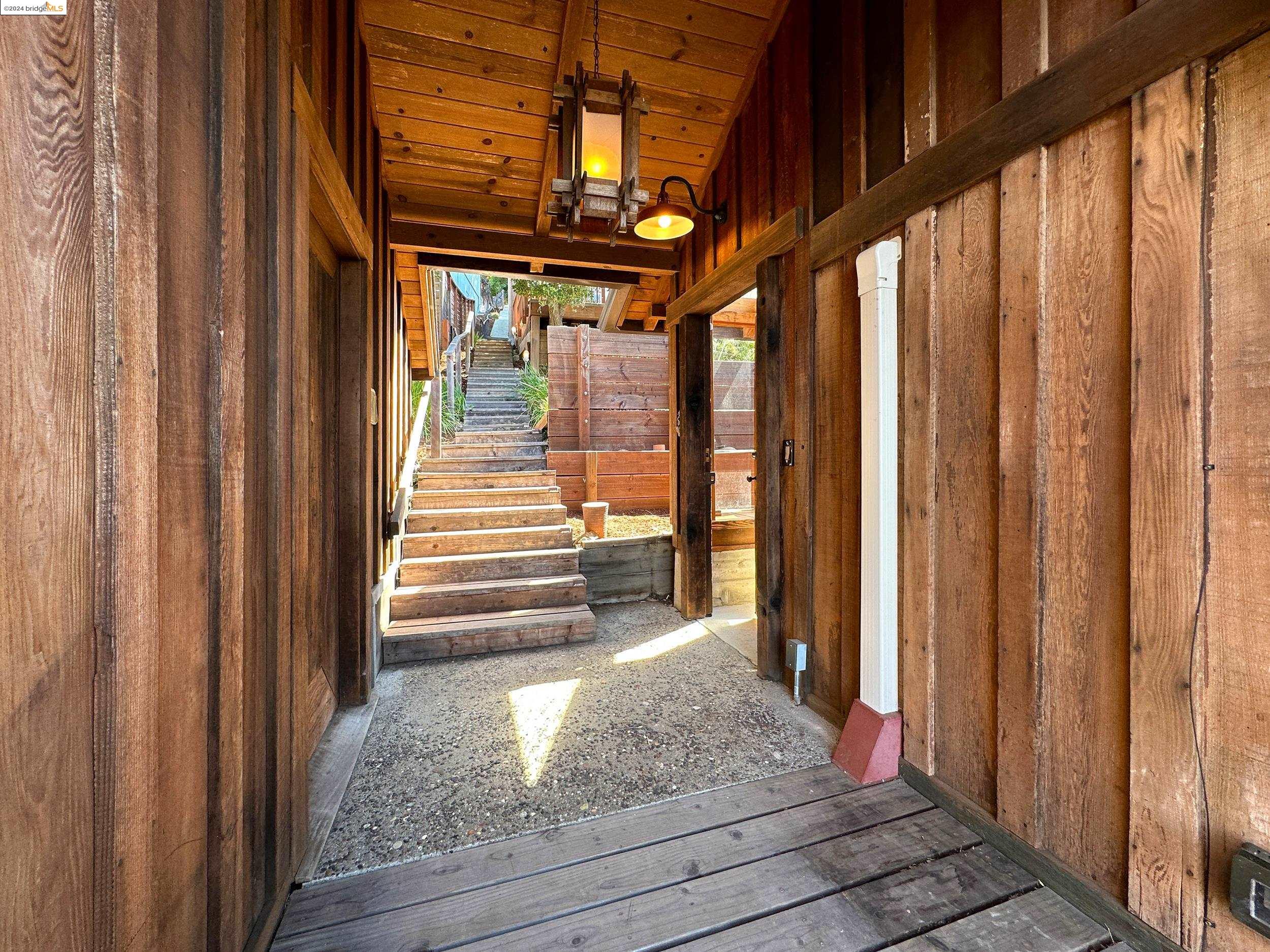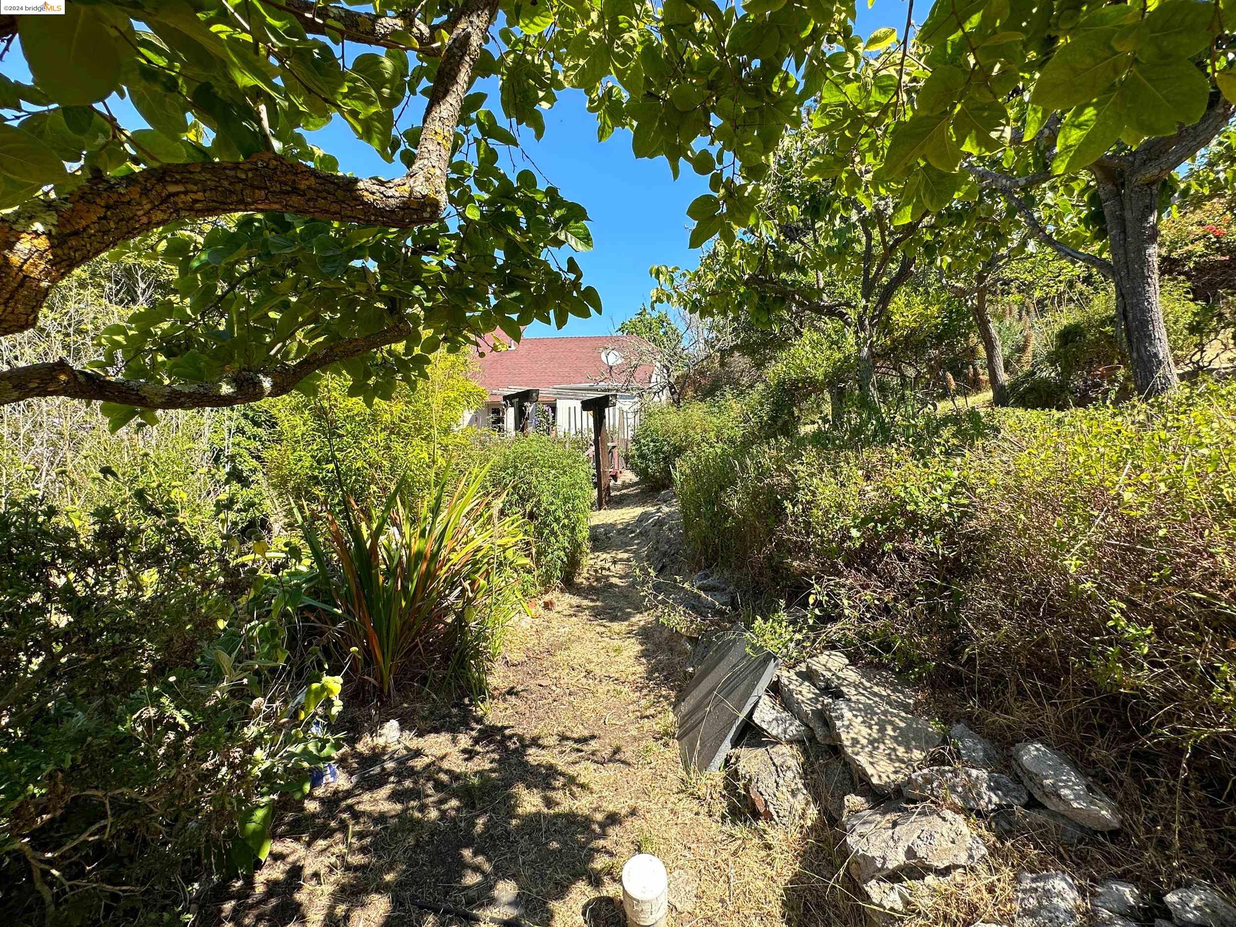 A beautifully unique and inspiring retreat built in 1924 and modernized in 2019. Nestled on over a quarter-acre, private hillside in central Kensington, this 3-bedroom, 3.5-bathroom single-family residence offers 1,875 square feet of bright and airy living space, set on an expansive 11,410 square foot lot. The property boasts a fruitful orchard with persimmons, lemons, and apple trees, a serene oak forest, a tranquil bamboo grove, and ample sunlight and space for flourishing vegetable gardens. This home, perfect for those seeking tranquility, combines eclectic architecture and farmhouse styles with modern updates. The exterior showcases board and batten-weathered redwood, while the interior exudes warmth with a white-weathered finish and stained glass accents. This two-story abode is a sanctuary of light, lush surroundings, and stunning cityscapes. Every detail has been thoughtfully enhanced since 2019, with over $400,000 in updates including Nest smart control, a central alarm system, new exterior walls and insulation, ACME solar-powered retractable awnings, along with mini-split heat and AC units. Additional updates include newly replaced foundations, seismic retrofitting, new skylights, upgraded electrical and plumbing systems, as well as Marvin Signature windows.