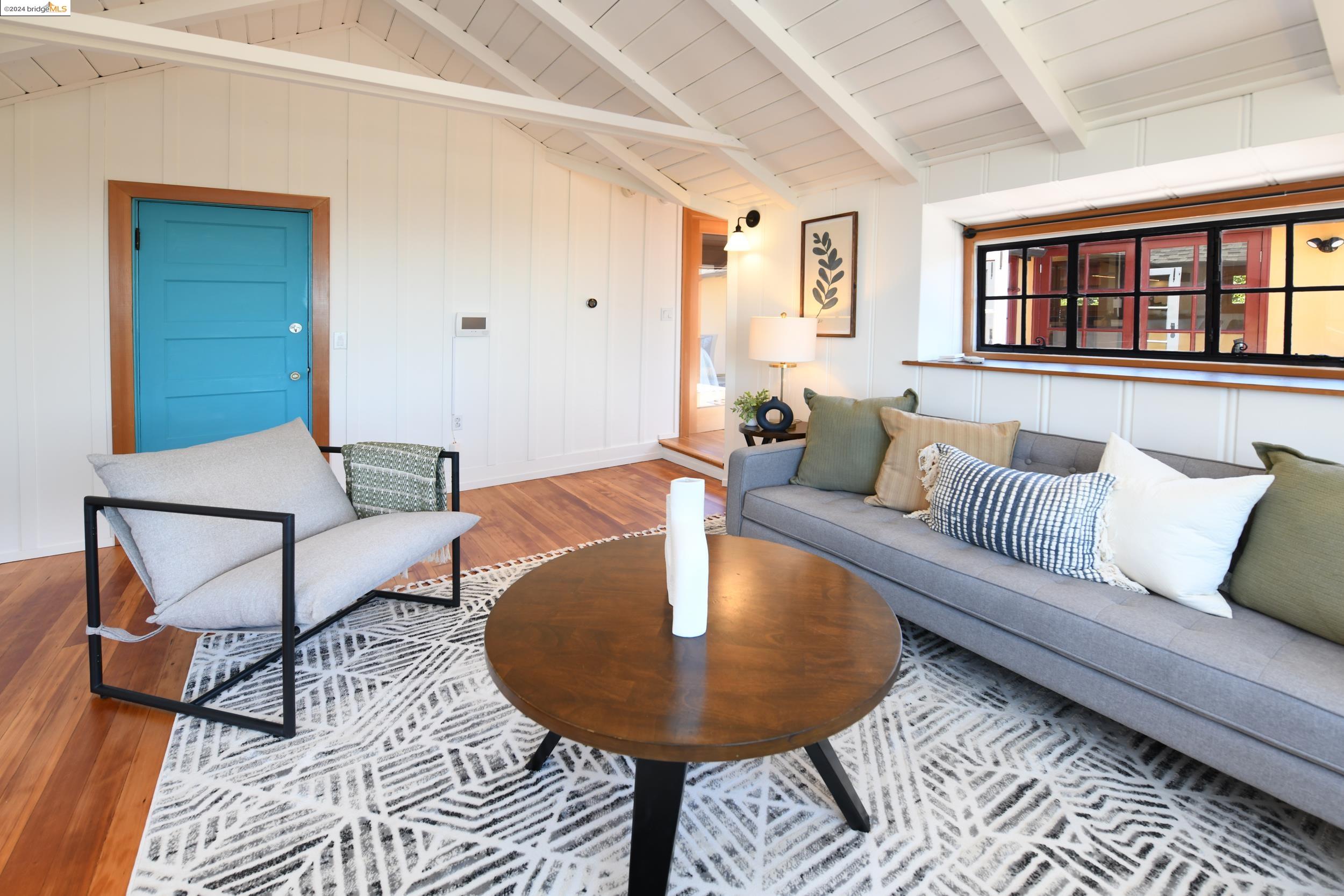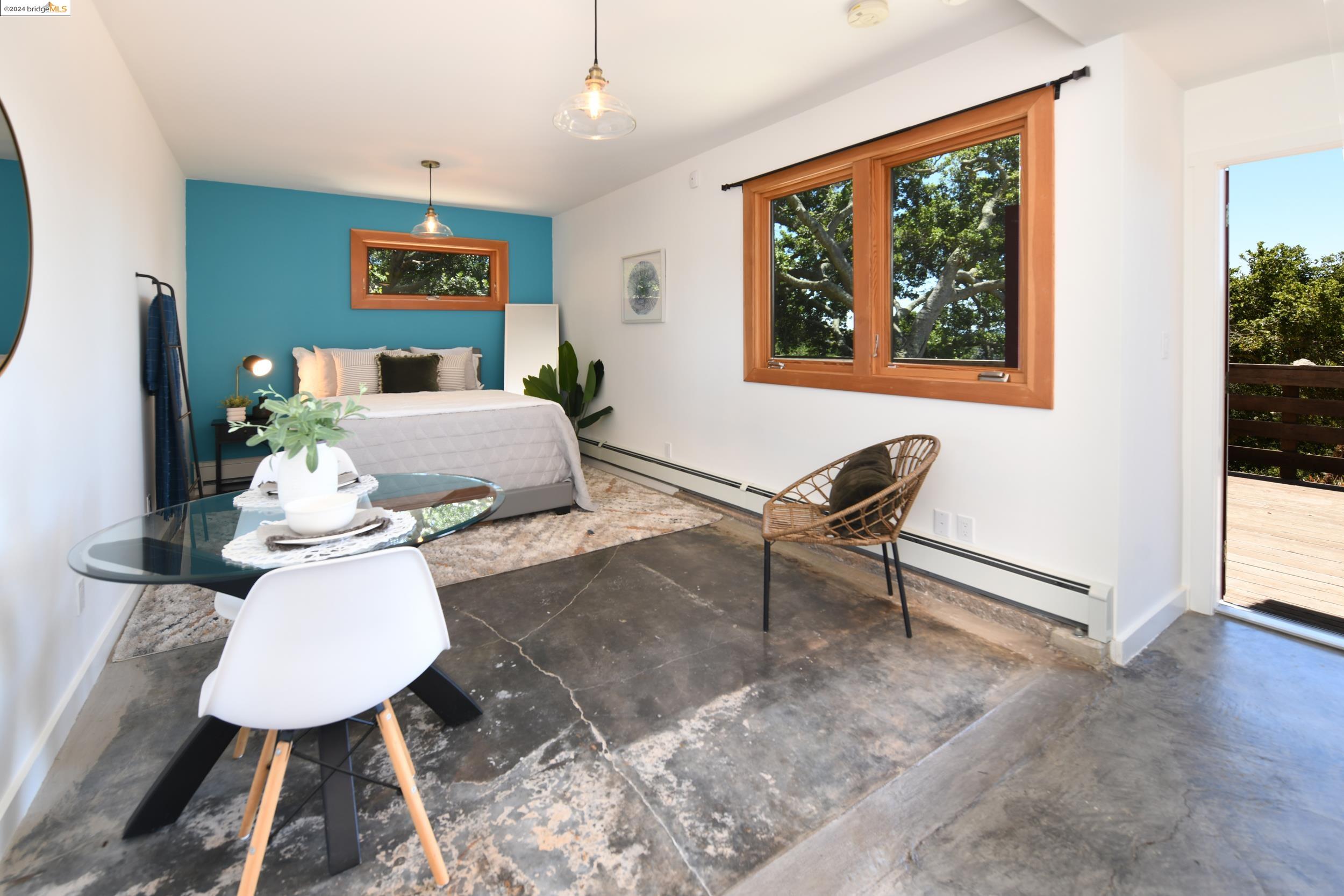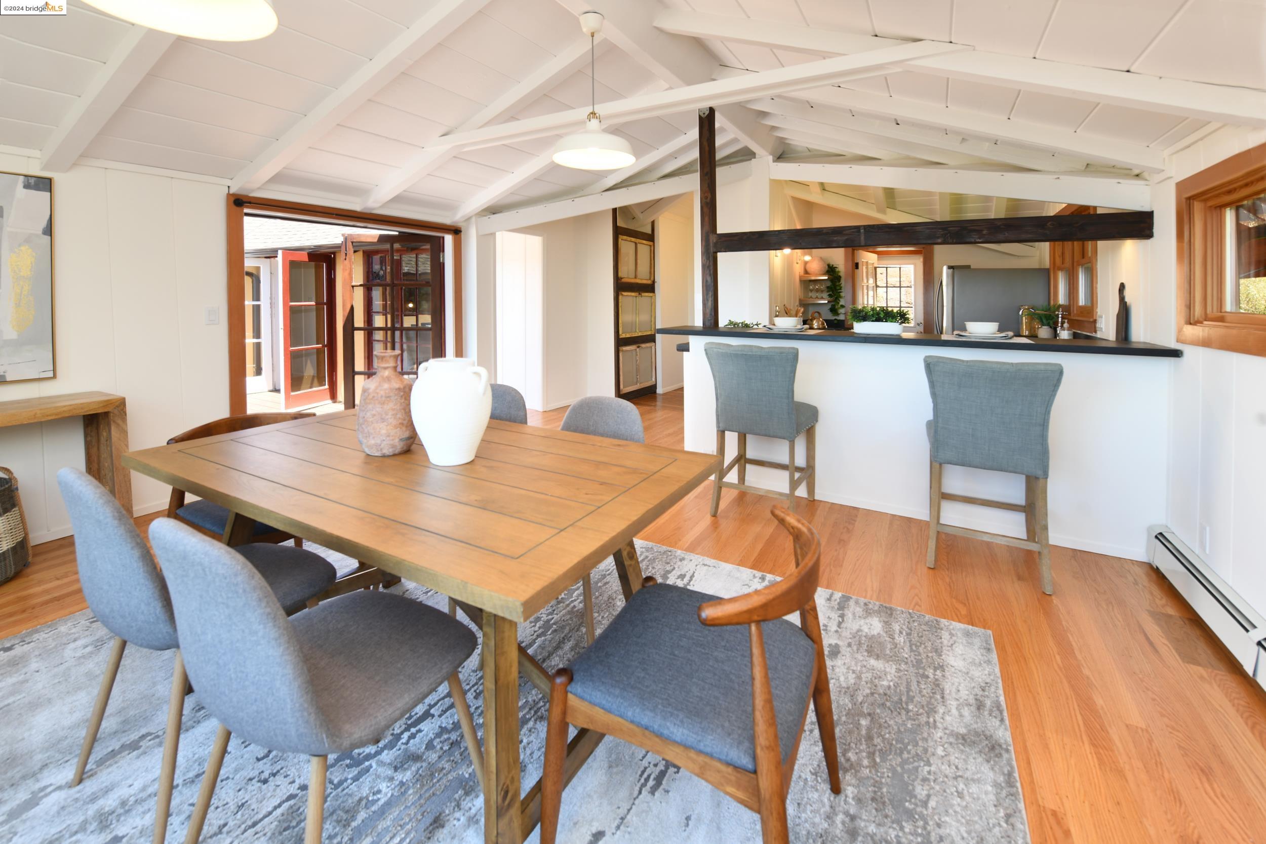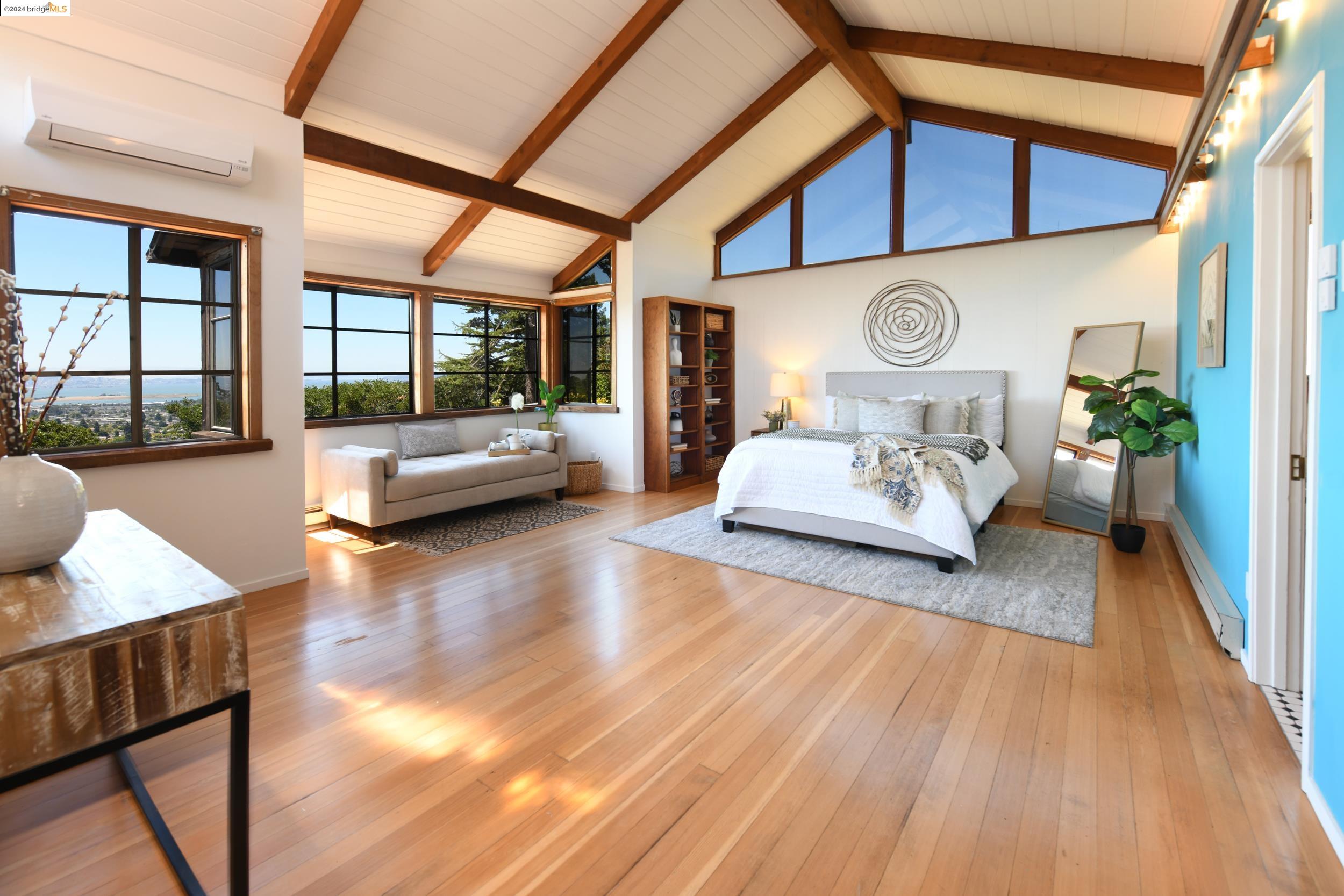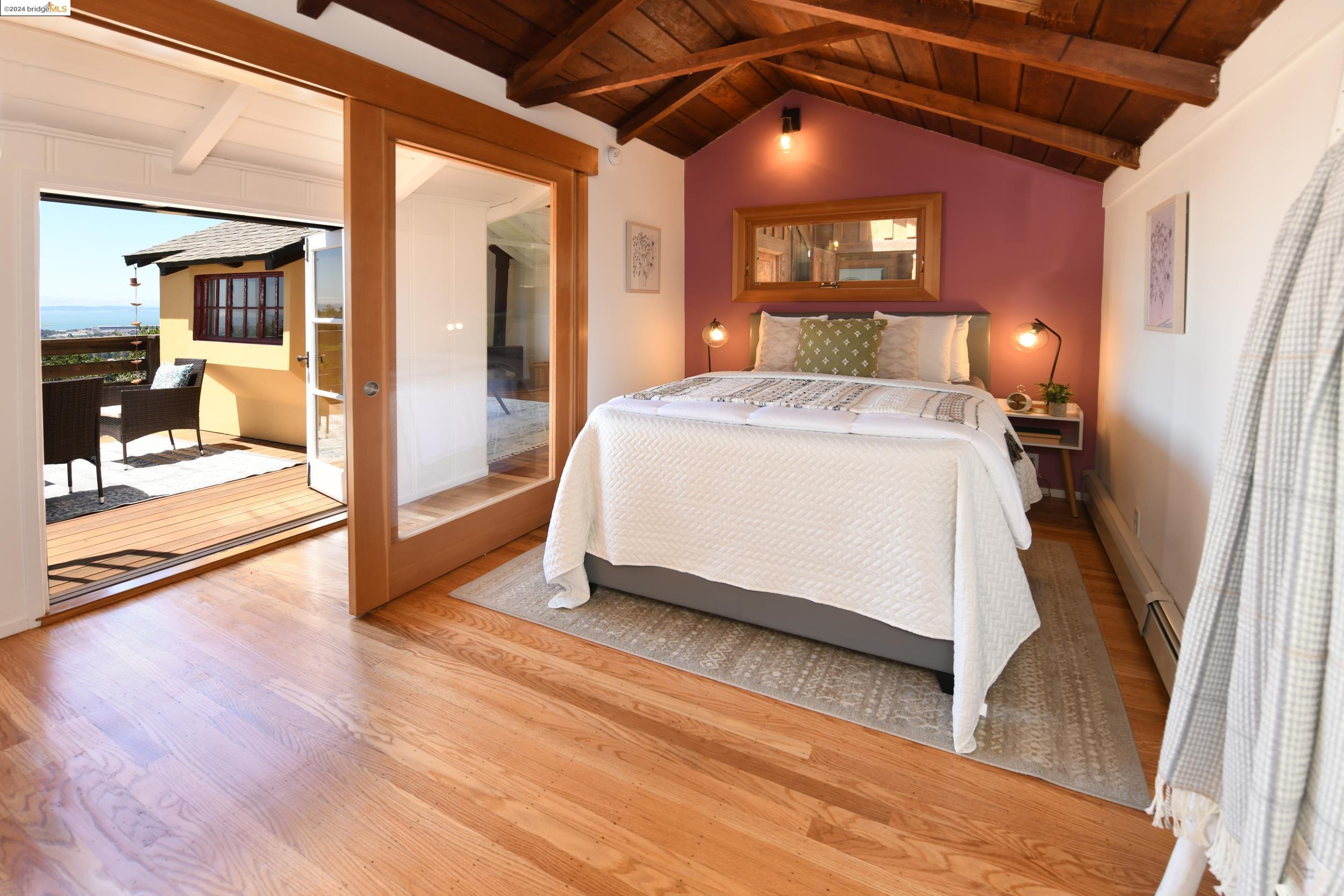 A beautifully unique and inspiring retreat built in 1924 and modernized in 2019. Nestled on over a quarter-acre, private hillside in central Kensington, this 3-bedroom, 3.5-bathroom single-family residence offers 1,875 square feet of bright and airy living space, set on an expansive 11,410 square foot lot. The property boasts a fruitful orchard with persimmons, lemons, and apple trees, a serene oak forest, a tranquil bamboo grove, and ample sunlight and space for flourishing vegetable gardens. This home, perfect for those seeking tranquility, combines eclectic architecture and farmhouse styles with modern updates. The exterior showcases board and batten-weathered redwood, while the interior exudes warmth with a white-weathered finish and stained glass accents. This two-story abode is a sanctuary of light, lush surroundings, and stunning cityscapes. Every detail has been thoughtfully enhanced since 2019, with over $400,000 in updates including Nest smart control, a central alarm system, new exterior walls and insulation, ACME solar-powered retractable awnings, along with mini-split heat and AC units. Additional updates include newly replaced foundations, seismic retrofitting, new skylights, upgraded electrical and plumbing systems, as well as Marvin Signature windows.