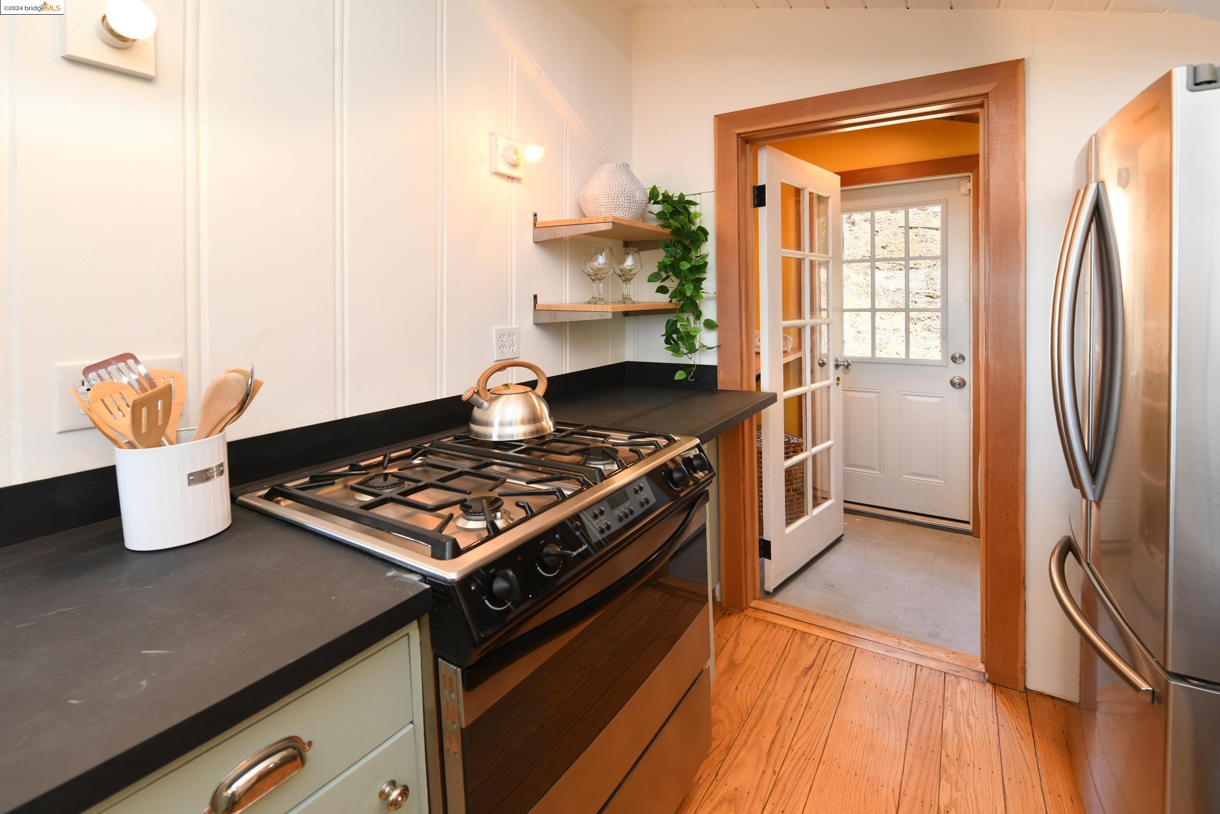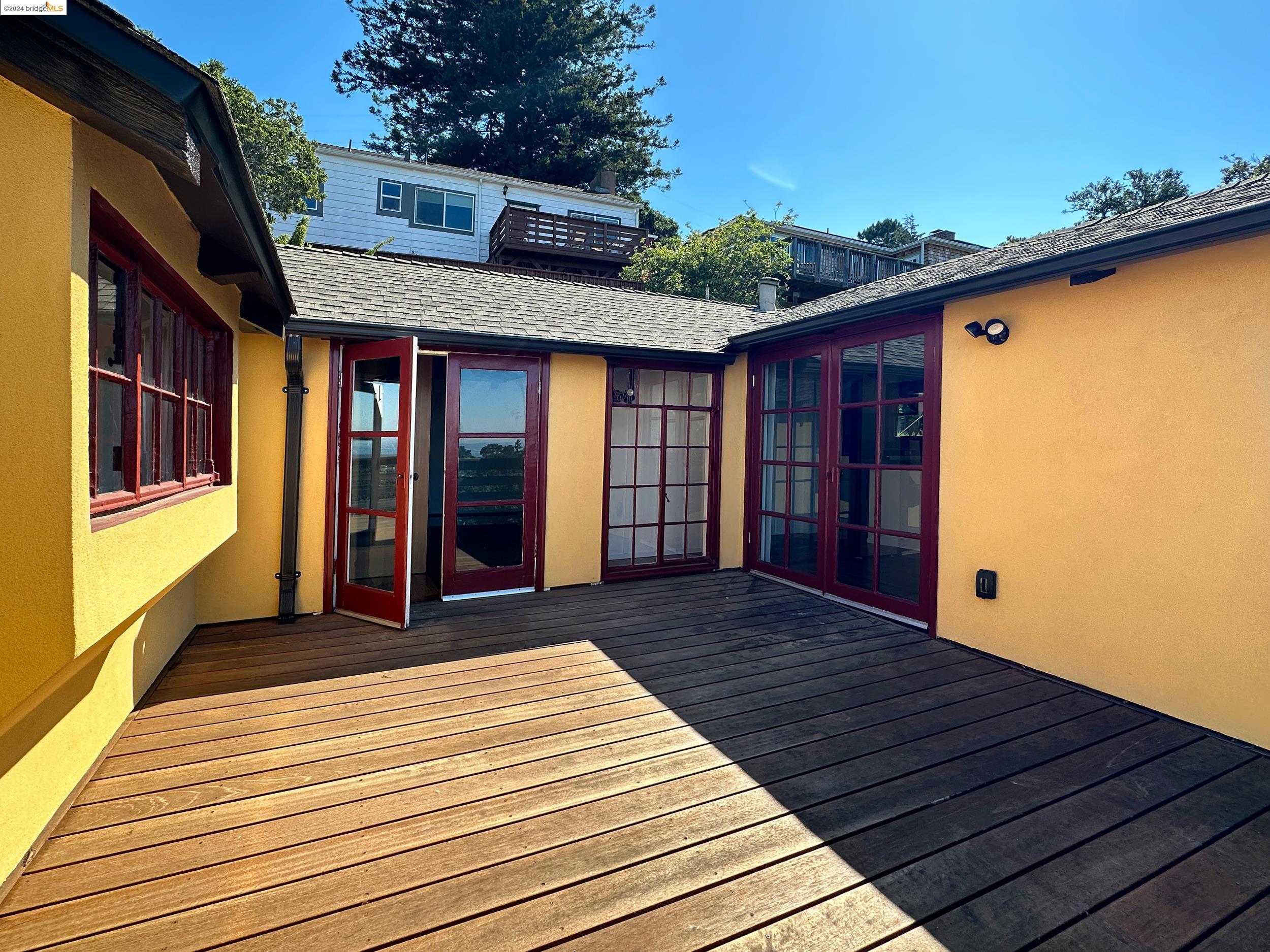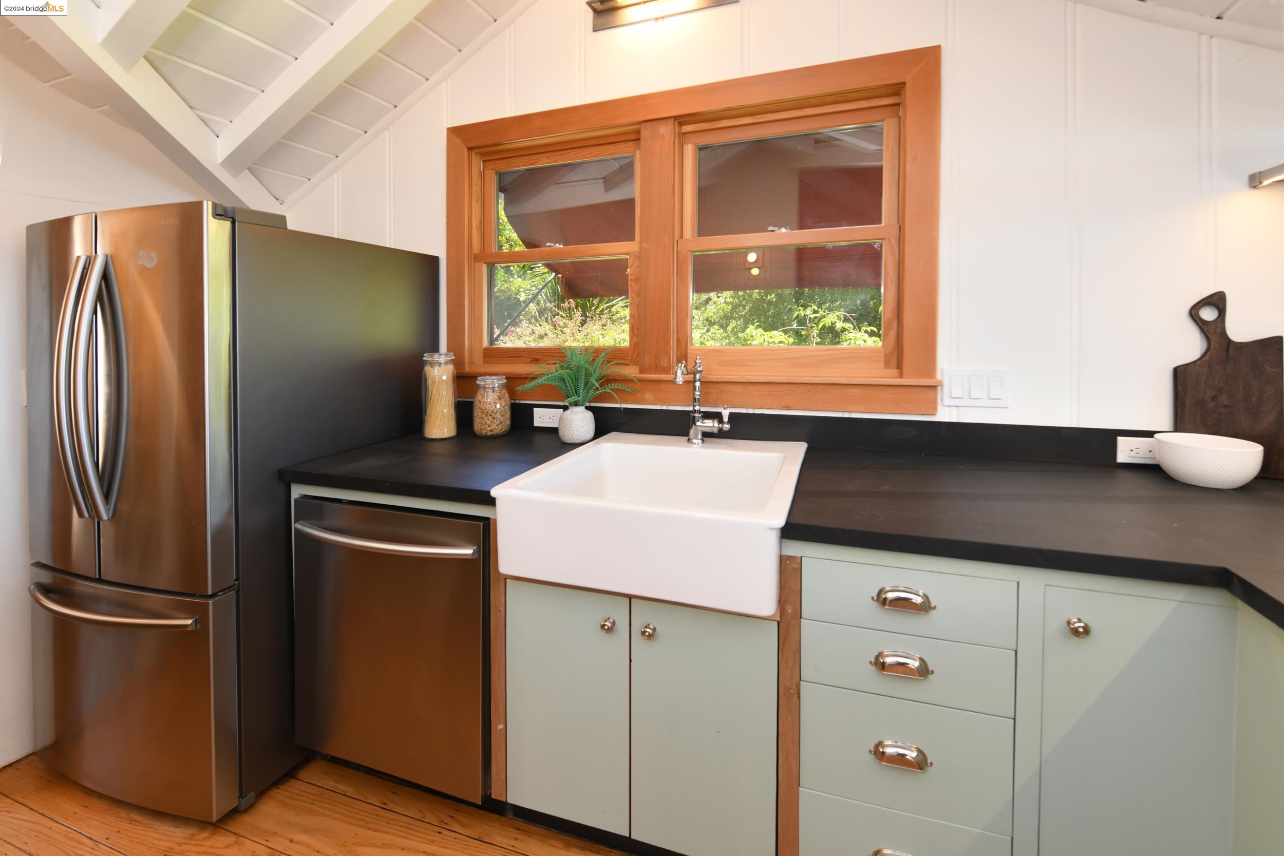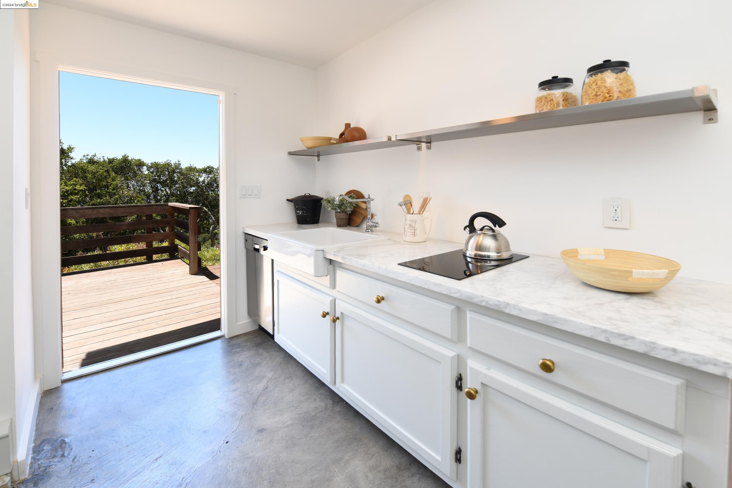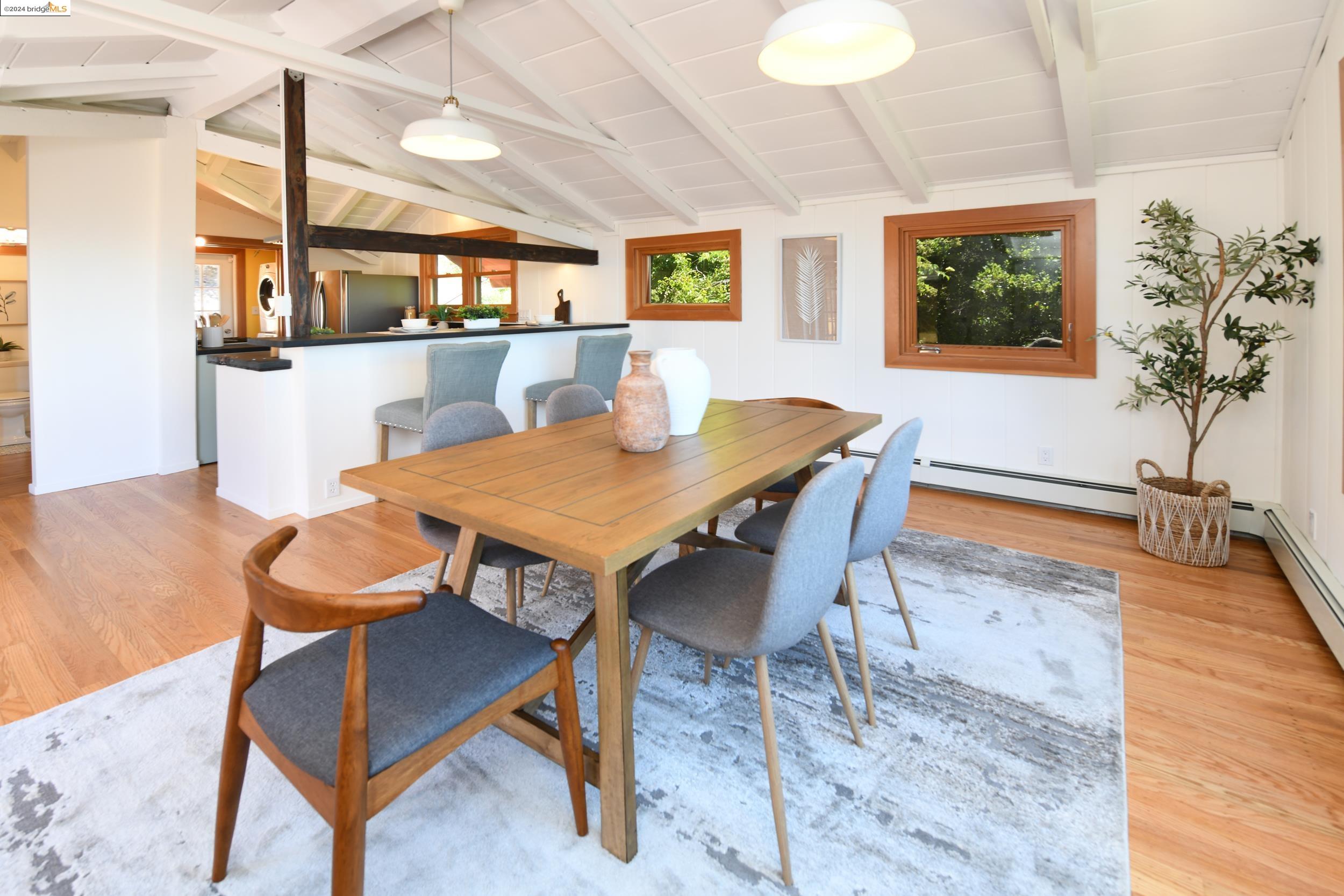 A beautifully unique and inspiring retreat built in 1924 and modernized in 2019. Nestled on over a quarter-acre, private hillside in central Kensington, this 3-bedroom, 3.5-bathroom single-family residence offers 1,875 square feet of bright and airy living space, set on an expansive 11,410 square foot lot. The property boasts a fruitful orchard with persimmons, lemons, and apple trees, a serene oak forest, a tranquil bamboo grove, and ample sunlight and space for flourishing vegetable gardens. This home, perfect for those seeking tranquility, combines eclectic architecture and farmhouse styles with modern updates. The exterior showcases board and batten-weathered redwood, while the interior exudes warmth with a white-weathered finish and stained glass accents. This two-story abode is a sanctuary of light, lush surroundings, and stunning cityscapes. Every detail has been thoughtfully enhanced since 2019, with over $400,000 in updates including Nest smart control, a central alarm system, new exterior walls and insulation, ACME solar-powered retractable awnings, along with mini-split heat and AC units. Additional updates include newly replaced foundations, seismic retrofitting, new skylights, upgraded electrical and plumbing systems, as well as Marvin Signature windows.