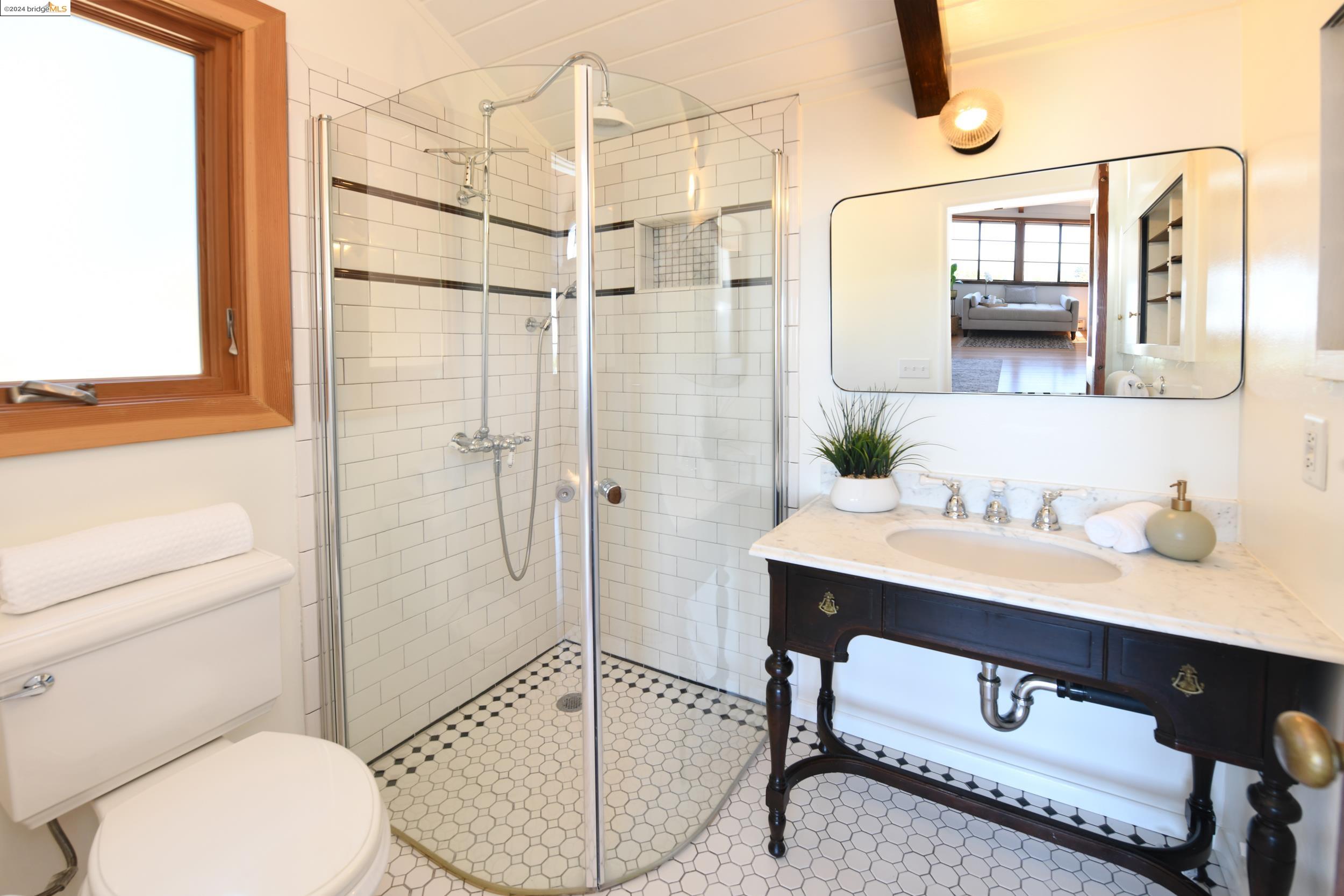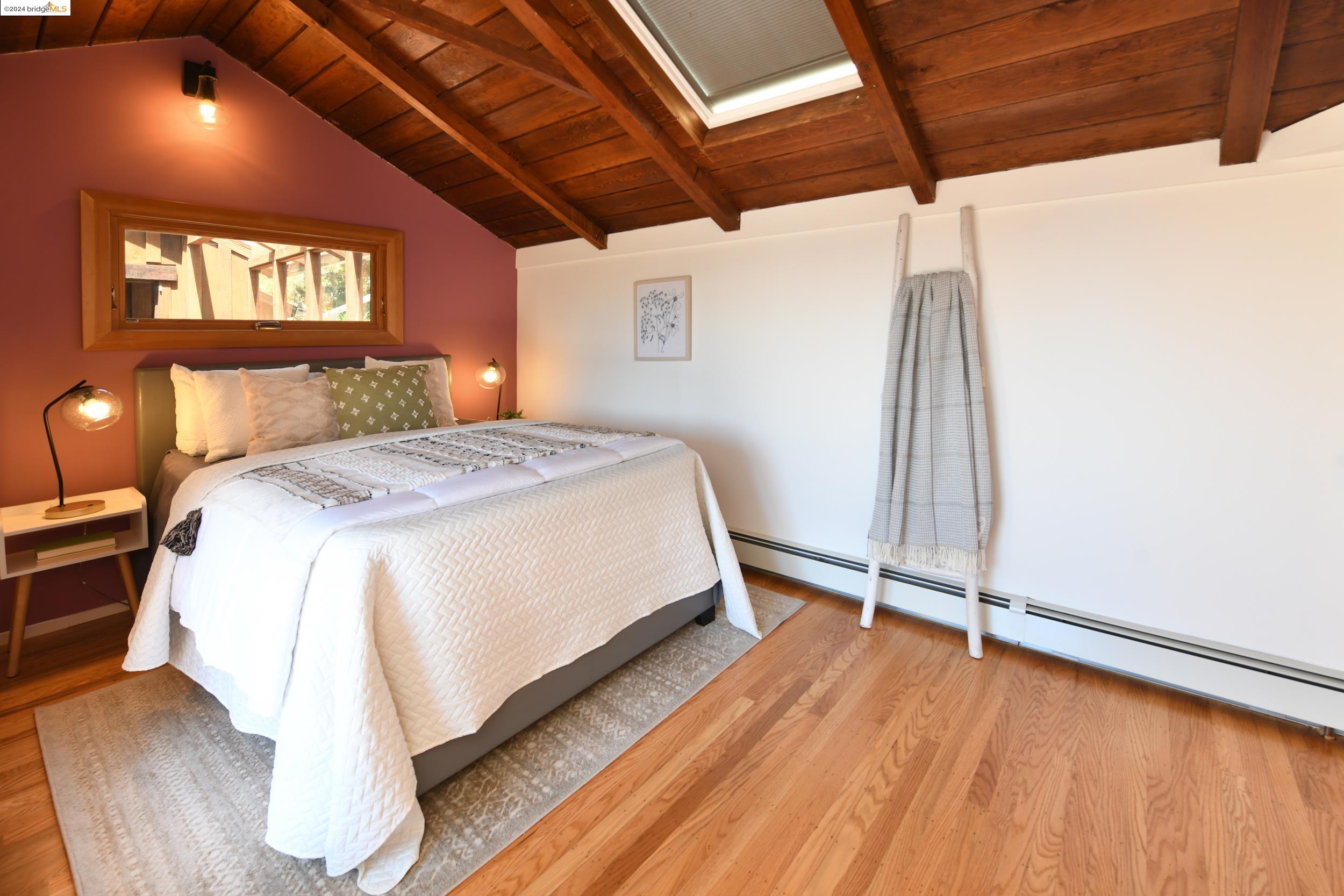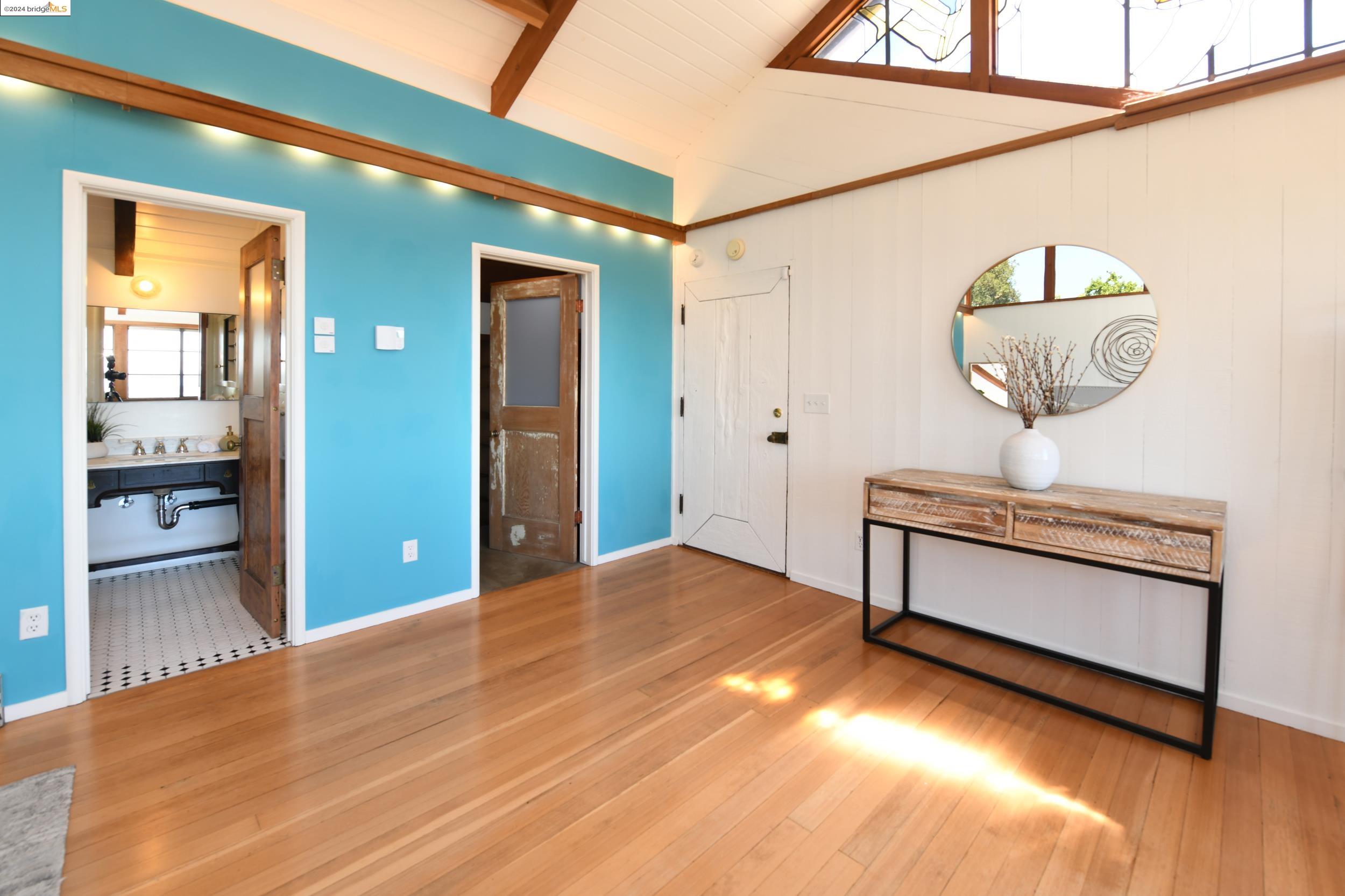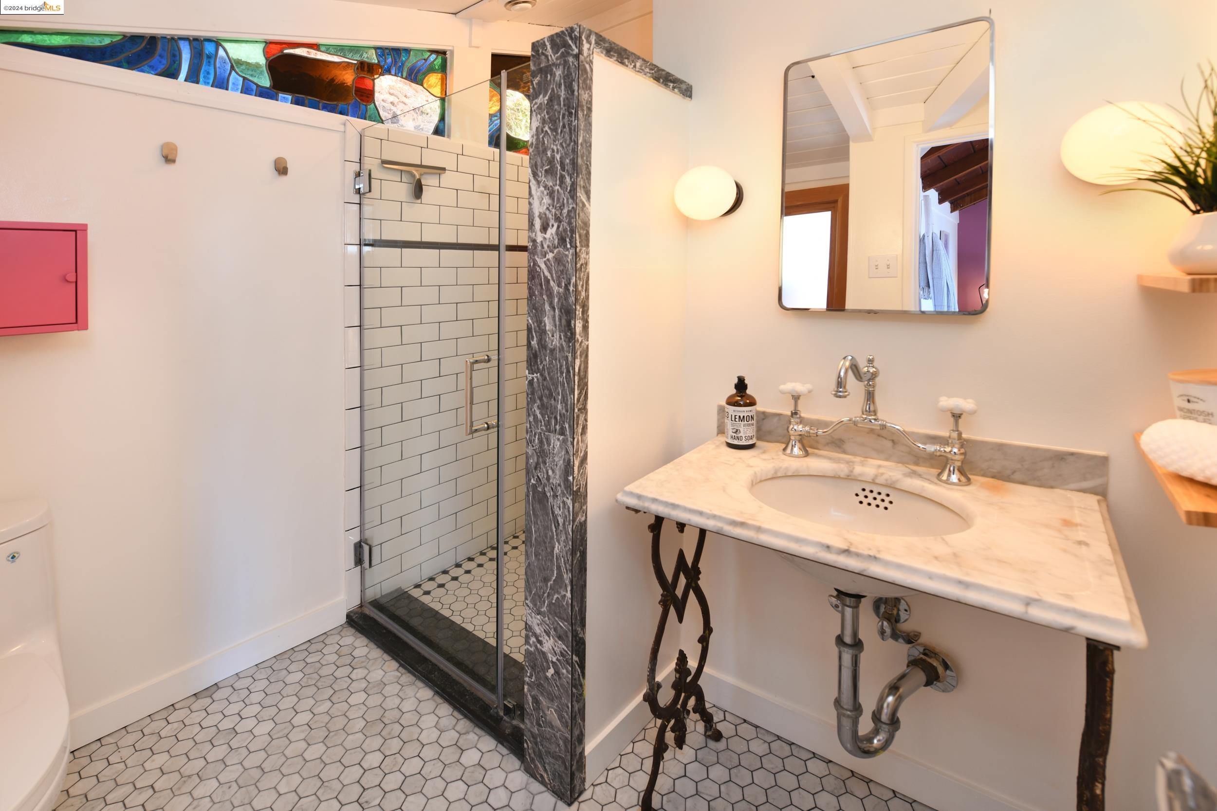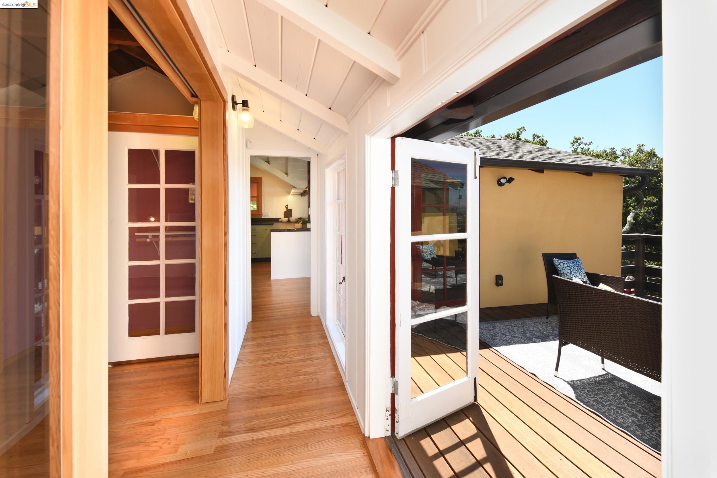 A beautifully unique and inspiring retreat built in 1924 and modernized in 2019. Nestled on over a quarter-acre, private hillside in central Kensington, this 3-bedroom, 3.5-bathroom single-family residence offers 1,875 square feet of bright and airy living space, set on an expansive 11,410 square foot lot. The property boasts a fruitful orchard with persimmons, lemons, and apple trees, a serene oak forest, a tranquil bamboo grove, and ample sunlight and space for flourishing vegetable gardens. This home, perfect for those seeking tranquility, combines eclectic architecture and farmhouse styles with modern updates. The exterior showcases board and batten-weathered redwood, while the interior exudes warmth with a white-weathered finish and stained glass accents. This two-story abode is a sanctuary of light, lush surroundings, and stunning cityscapes. Every detail has been thoughtfully enhanced since 2019, with over $400,000 in updates including Nest smart control, a central alarm system, new exterior walls and insulation, ACME solar-powered retractable awnings, along with mini-split heat and AC units. Additional updates include newly replaced foundations, seismic retrofitting, new skylights, upgraded electrical and plumbing systems, as well as Marvin Signature windows.